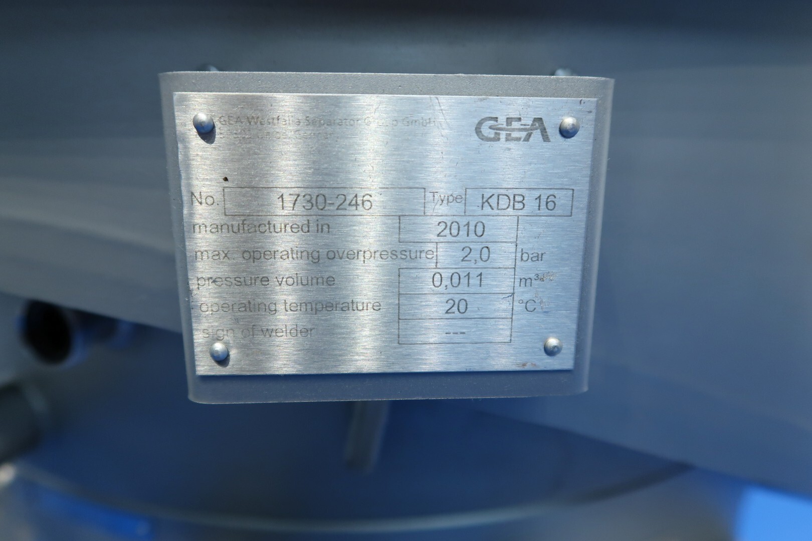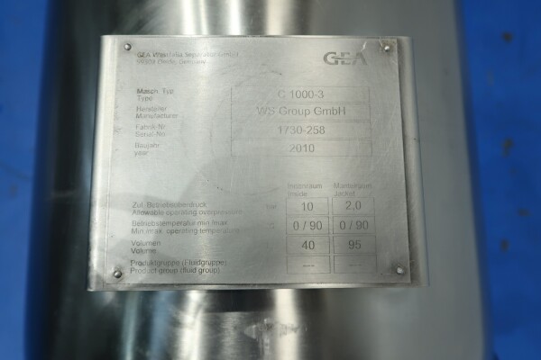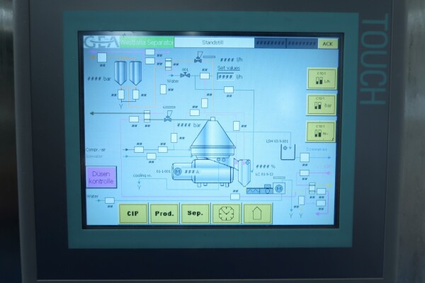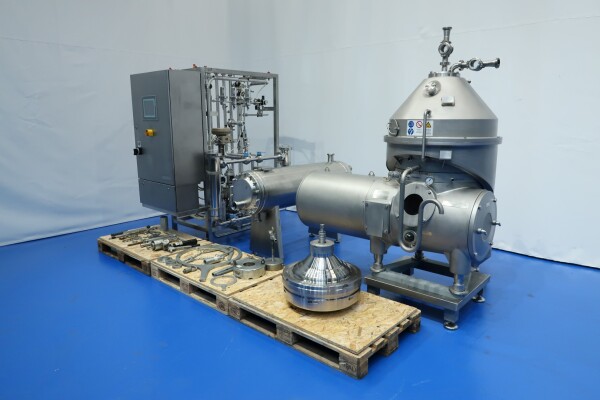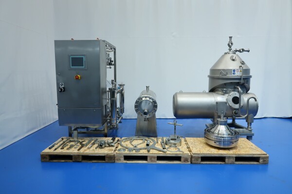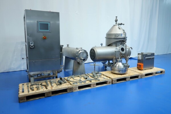 Inclusief: Een roestvrijstalen skid met hulpapparatuur voor de separator met dubbele melkfilters met kleppen aan de inlaat, een flowtransmitter en een toevoerstroomregelklep. Op de wei-uitvoer, tegendruk, flowtransmitter, kleppen, steriele luchtfilters (stoombaar), koelwaterkleppen en sensoren. Op de productuitvoer een product opvangtrechter. Naast de unit zijn een buisvormige productkoeler van GEA-Westfalia model C1000, een funderingsframe, een complete set gereedschap en een set reserveonderdelen (met 2 sets nozzles van 0,6 mm en 0,7 mm) inbegrepen. Gesloten ontwerp met steriel luchtfilter en voor een langere houdbaarheid van het product. Besturing: Start-driehoekmotorstarter, CPU Siemens Simatic S7 PLC met touchscreen HMI-paneel. Documentatie: handleiding, onderdelenlijst en technische tekeningen beschikbaar.