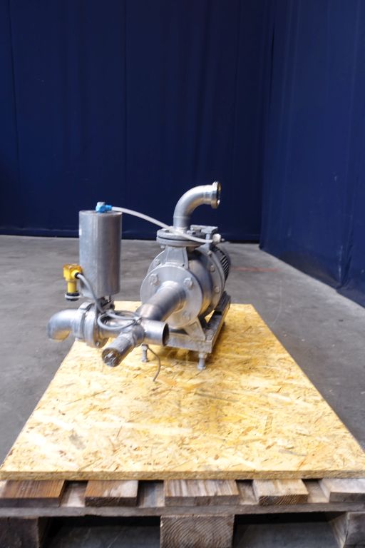 Non sanitary centrifugal pump. Current motor: 4 kW - 7,9 A - 2820 rpm. Connections: 2'' / 2'', DIN. Performance chart: 12 m3/h - 37,7 mWC / 42 m3/h - 25,0 mWC.