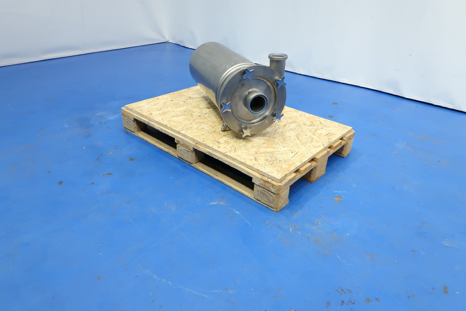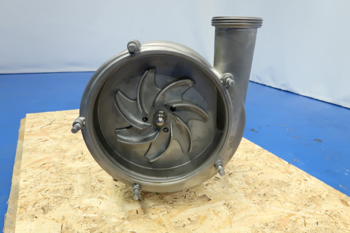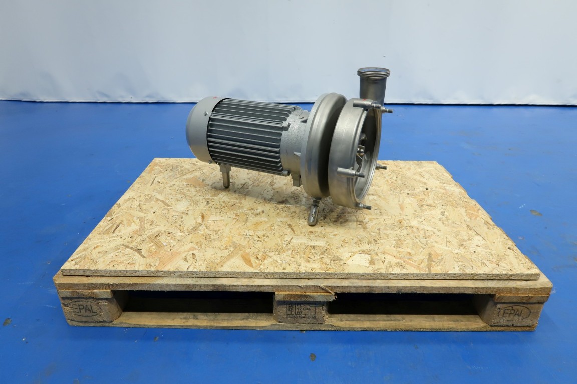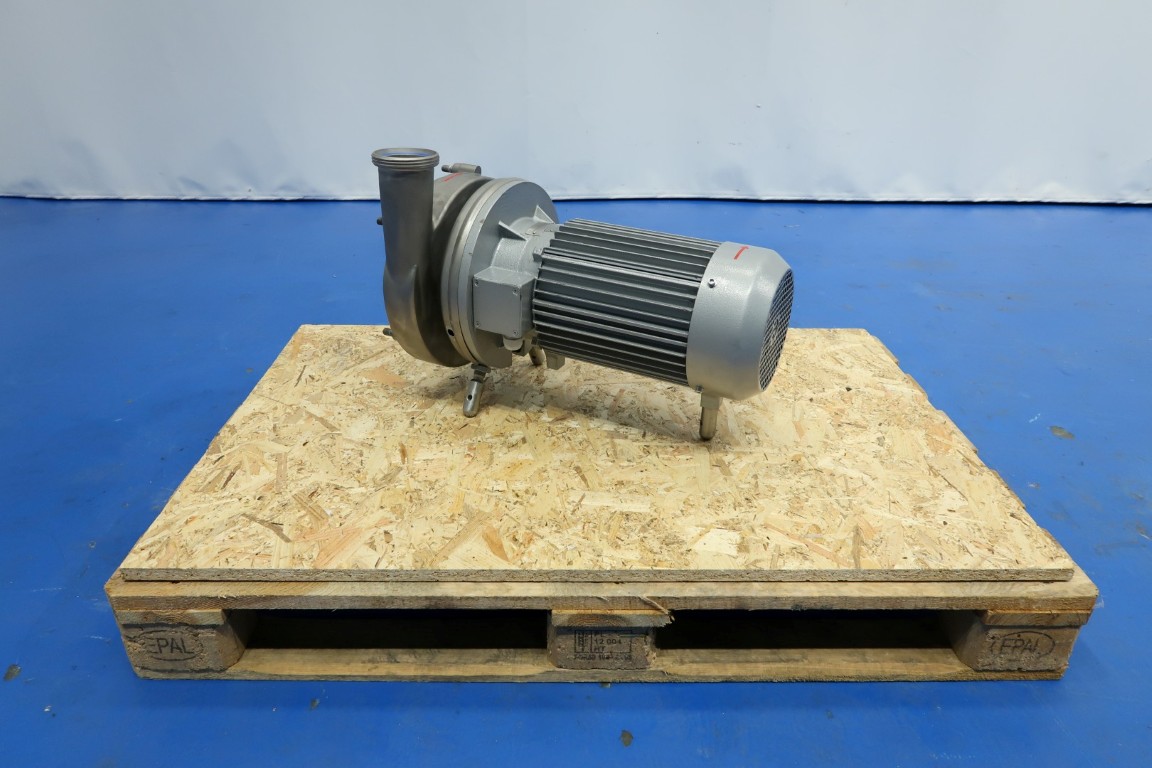 Sanitary centrifugal pump, already reconditioned. Motor: 5,5 kW - 12 A - 1750 rpm. Impellor diameter: 200 mm. Connections: (in) 3" Din / (out) 2,5" Din. Dimensions: 75x39x41 (lxwxh) cm - weight: 107 kg.