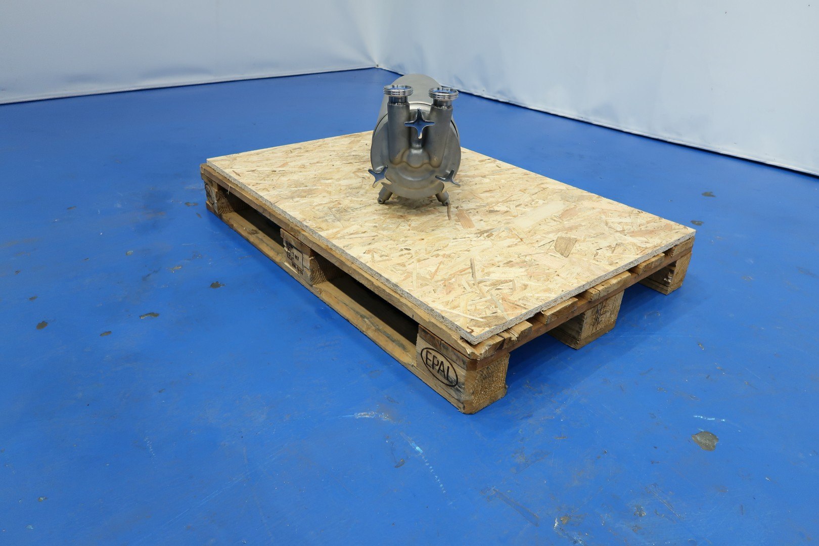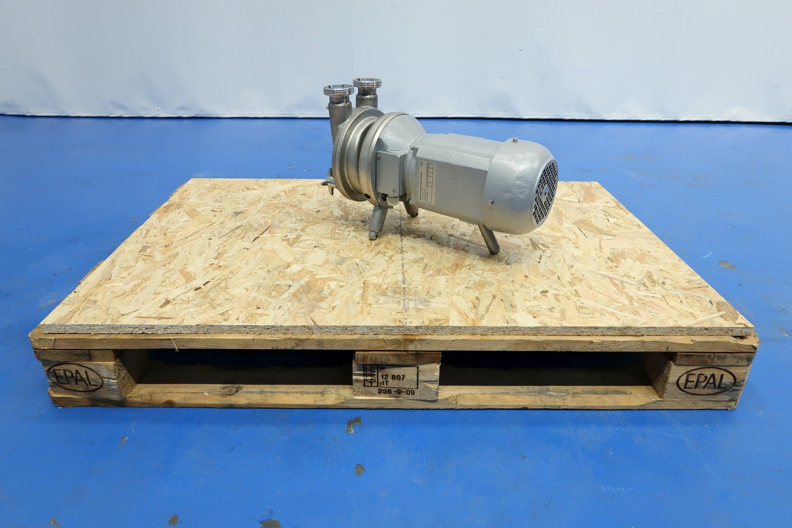 Sanitary self suction pump, already reconditioned. Impellor diameter 150 mm. Motor: 1,5 kW - 3,45 A - 1.440 rpm - 50 Hz. Connections: (in) DN40 Din - (out) DN40 Din. Dimensions: 60x22x30 (lxwxh) cm - weight: 45 kg.