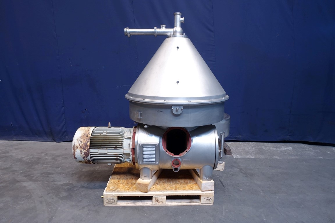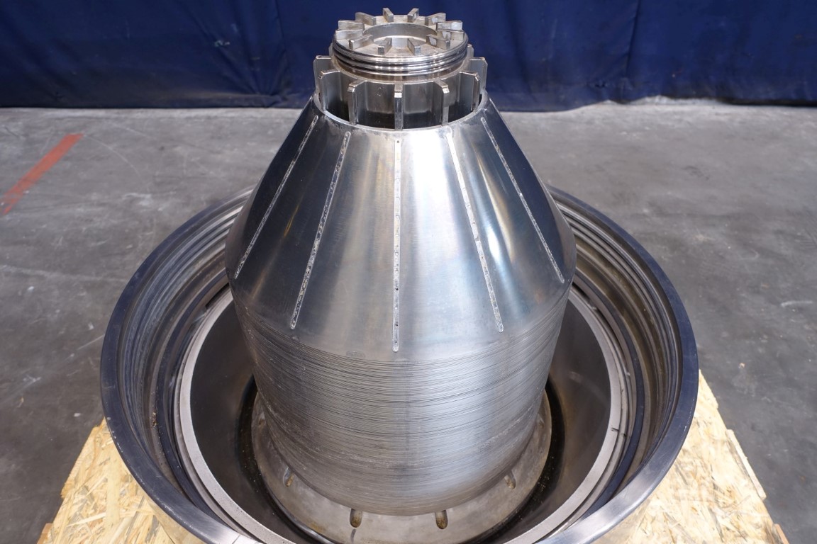 Whey Clarifier, self cleaning. Including bowl (model MSE140-96 for whey cleaning) 200 disks, bowl speed: 4.650 rpm, motor 37kW - 67A - 50Hz. Part of tools are included, but machine misses some major parts in the drive work (overview can be send on request). Bowl in good condition, Can be offered fully rebuild. Excluding: drive parts, Base frame, motor cover, outlet valves, controls.
