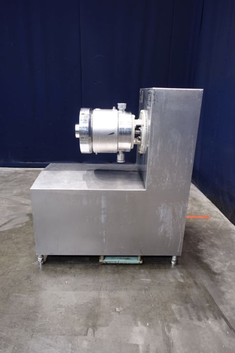 Stainless steel pinmixer with 1 cylinder. Cylinder diameter 300 mm, length 300 mm. 14 pins on the shaft/rotor and 24 pins on the double jacketed cylinder housing. Motor power: 37 kW - 72 A - 1.475 rpm. Design pressure: 80 bar, max. work temperature 100 °C. Excluded controls and documentation. Total dimensions: 68 x 119 x 140 cm - weight: 618 kg's.