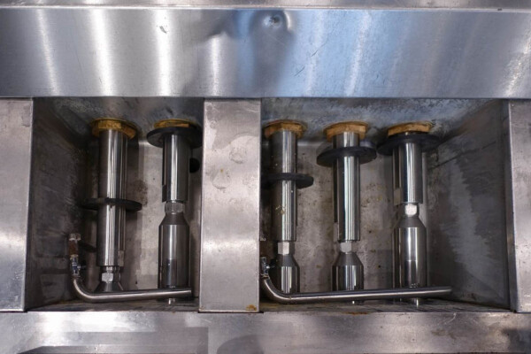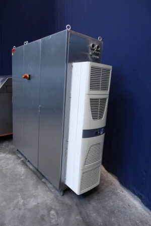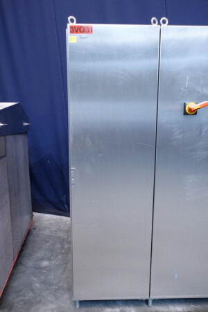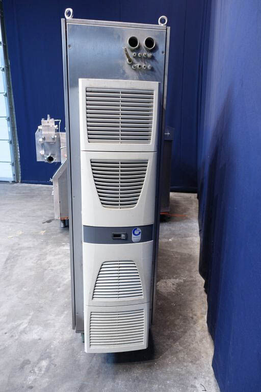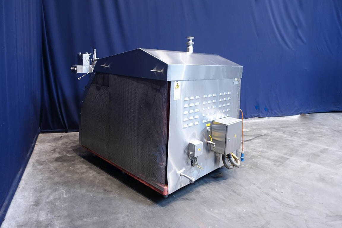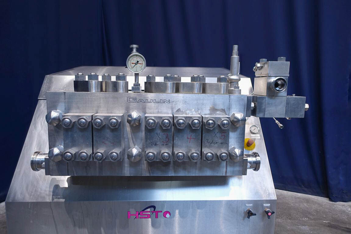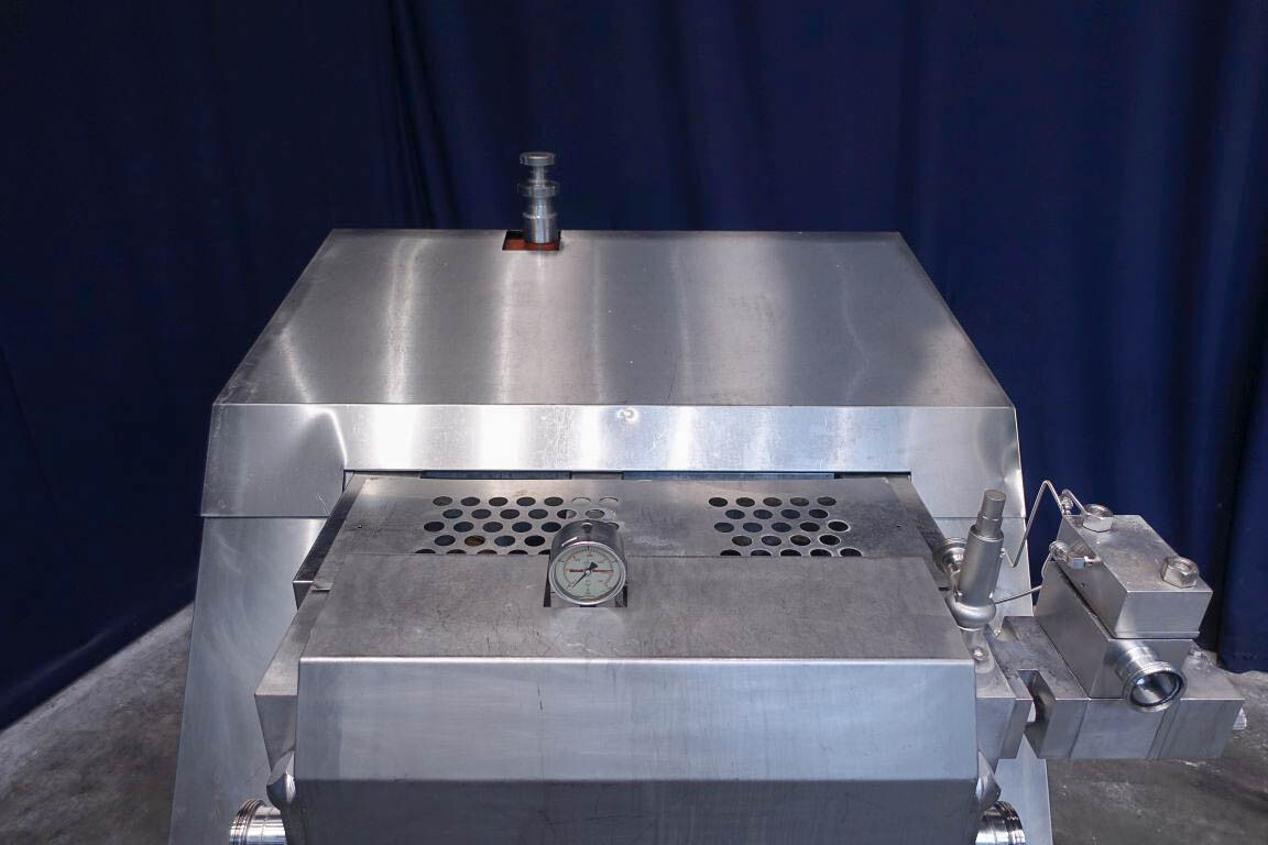 Hogedruk homogenisator. Gereviseerd door HST Maschinenbau Duitsland in 2013. 2 traps met handmatige drukregeling. 5 pistons. Piston diameter: 2 3/4''. RVS bekleed. Aansluitingen: 80 mm/50 mm, DIN. Vrijstaand RVS Rittal schakelkast met frequentieomvormer, Emerson M701 en een koelunit. Overdrukklep. Manometer op uitlaat. 2 zij-inlaten. Inclusief een grote partij nieuwe reserveonderdelen. Inclusief handleiding en onderdelenlijst in het Duits.
