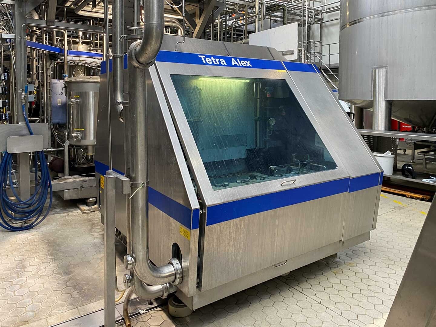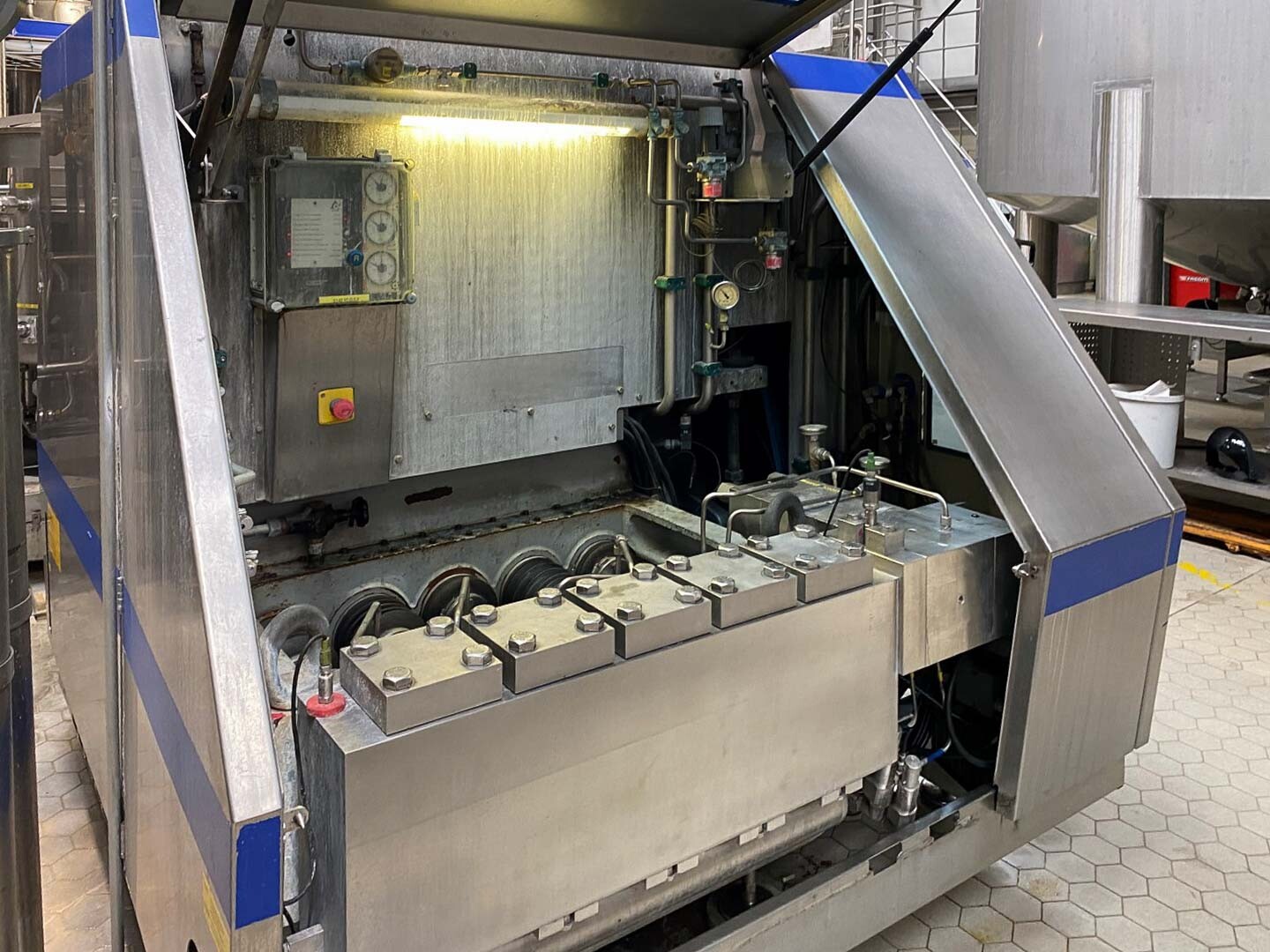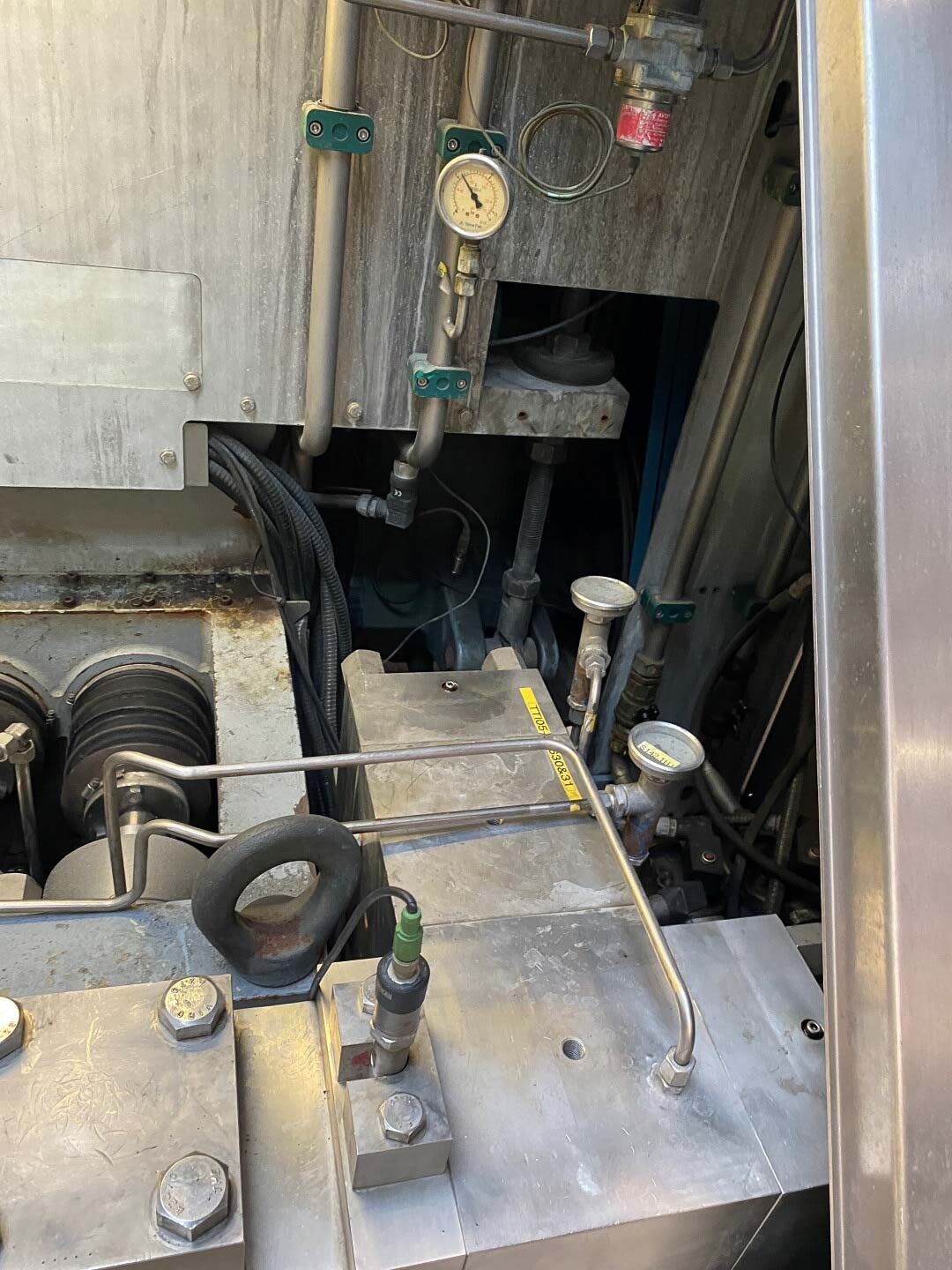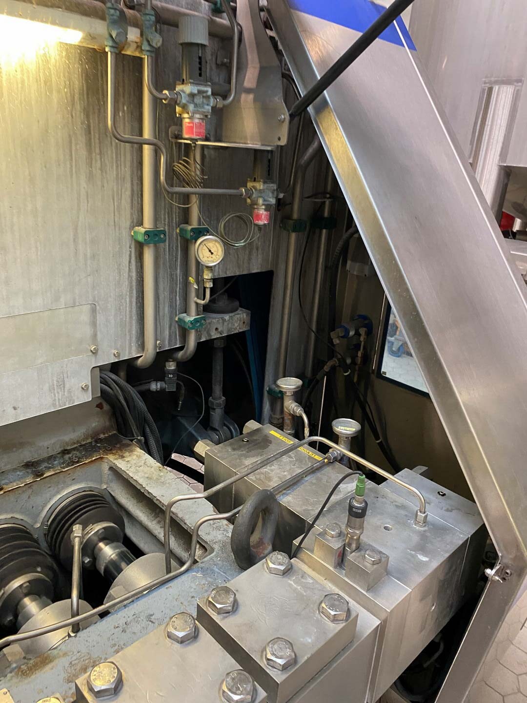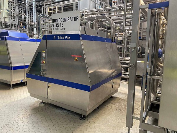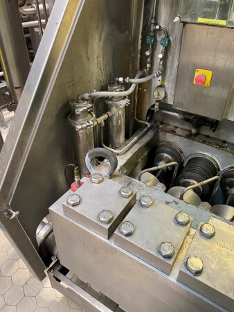 2-traps homogenisator, aseptisch ontwerp. Voorheen gebruikt in combinatie met een Tetra Pak VTIS. Mushroom kleppen. 5 zuigers, verchroomd. Zuiger diameter: 70 mm. Roestvrij staal bekleed in geluiddichte kast. Huidig motorvermogen: 160 kW, 1488 rpm – 400 Volt – 50HZ - 287 Amp (start 2066 A) Hydraulische eenheid en olie-circulatiepomp, waterstroommeter, sensoren. Maximale druk in de huidige configuratie met deze motor 250 bar. Druk: 3-10 bar. Pulsatiedemper op inlaat / uitlaat. Inclusief documentatie: bedieningshandleiding en elektrische schema’s beschikbaar. Exclusief schakelkast.