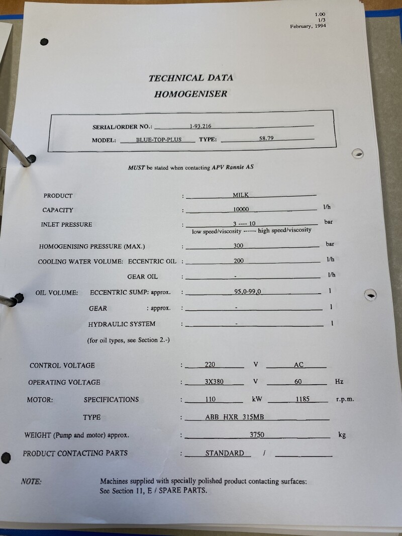 - Current motor power: 110 kW and maximum pressure in current confirguration with this motor 300 bar.