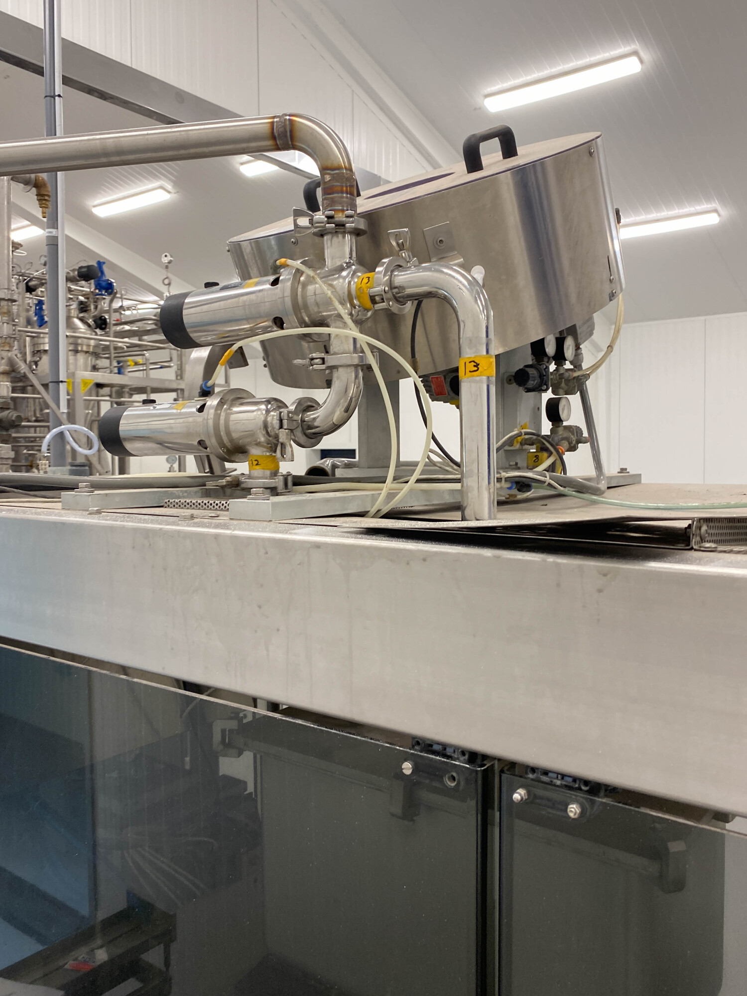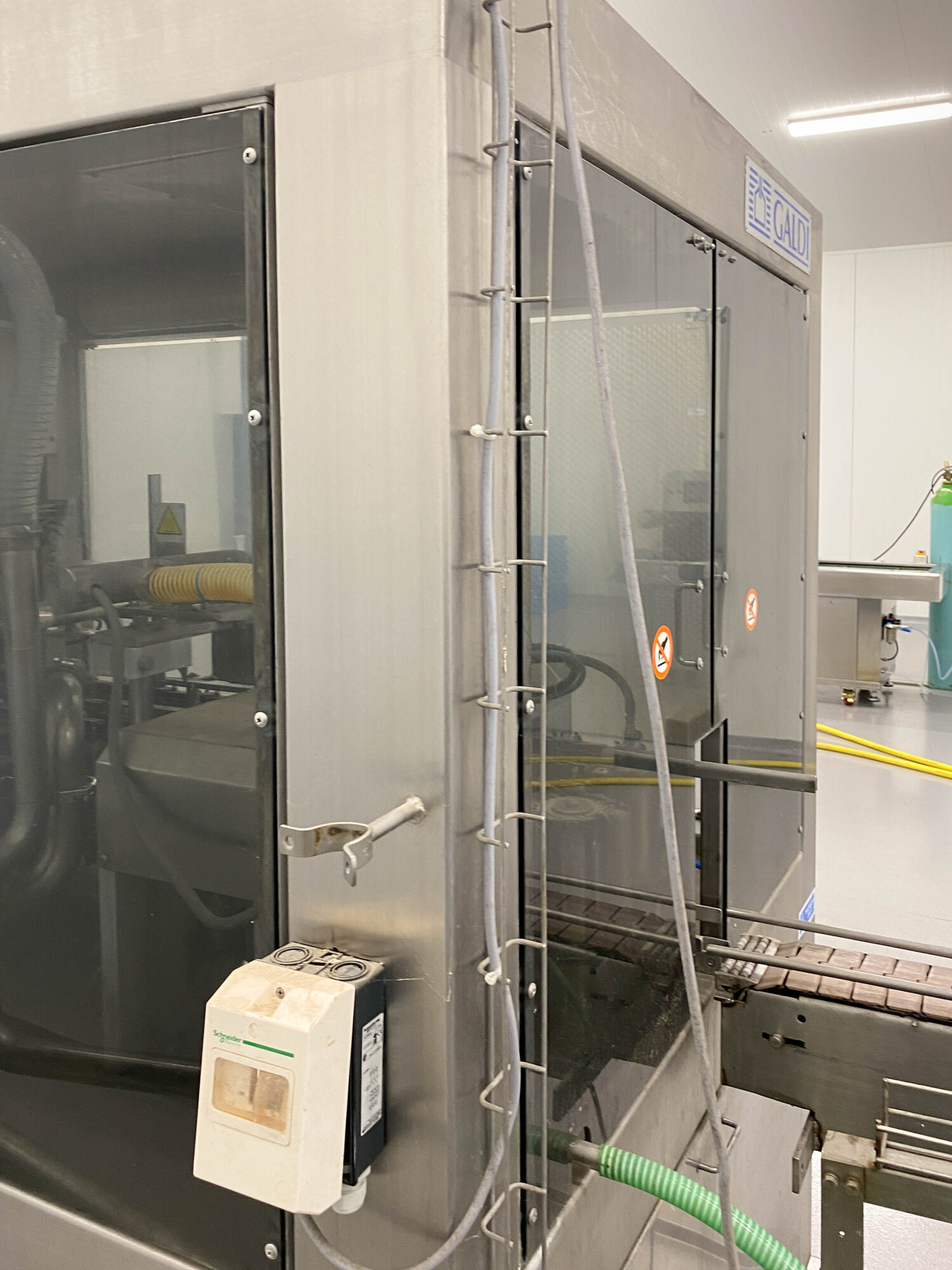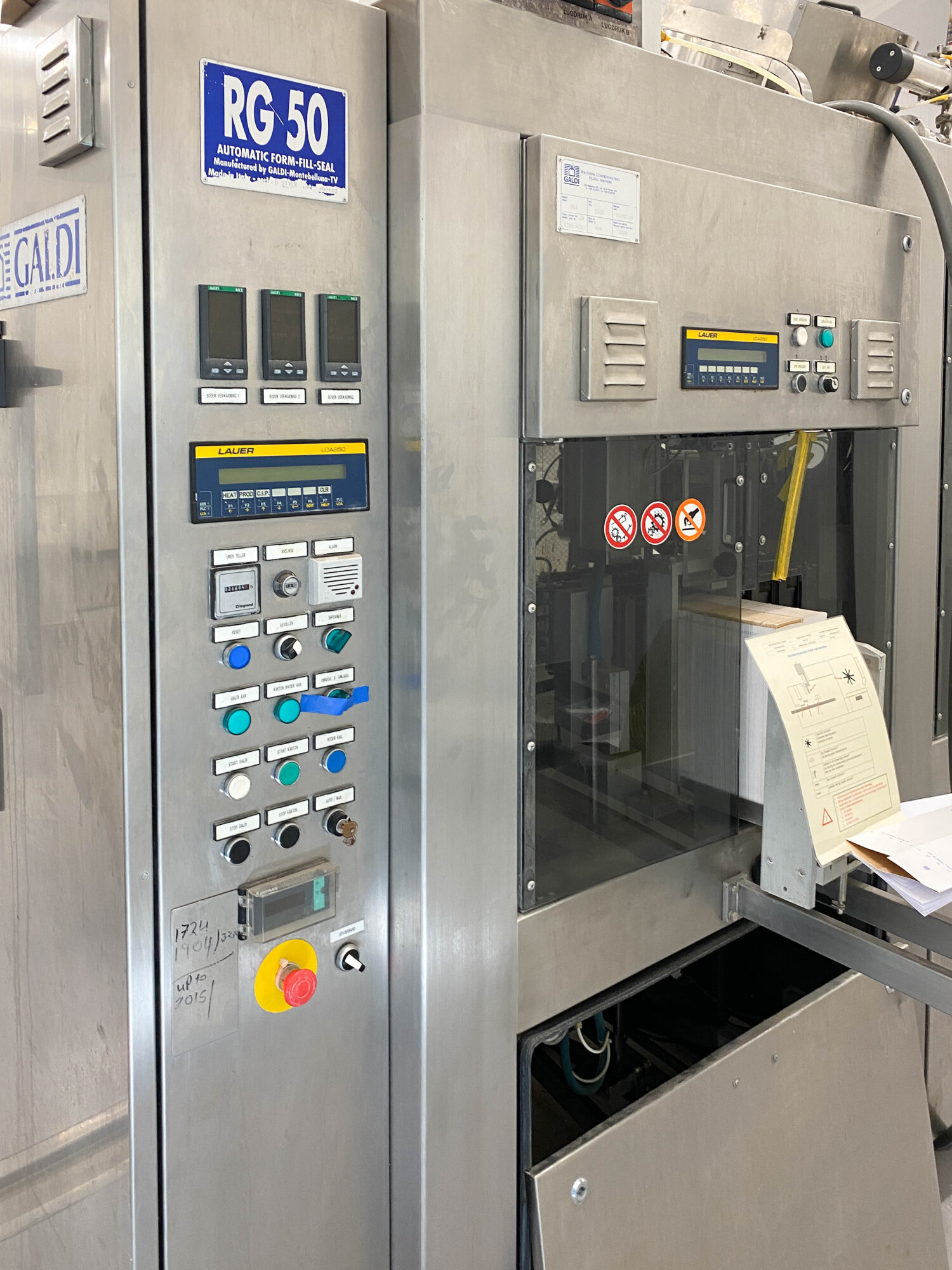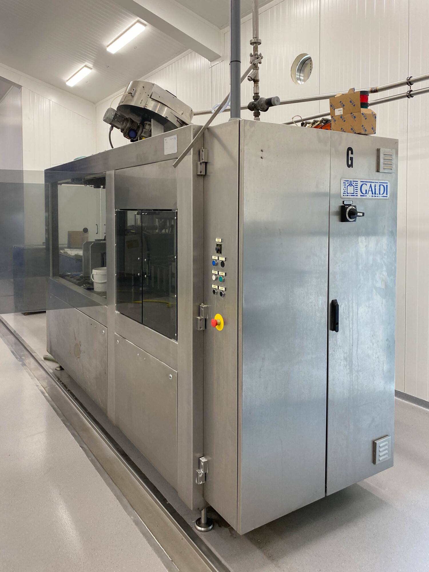 Automatische pak vulmachine, ontworpen voor het inline vormen, vullen en sealen van gable top pakken. Standaardformaat pak 70 x 70 mm., 250-1.000 ml. B-stijl dozen, 4-kops zuigervuller, CIP reinigbaar, dopapplicator model SCA machine nr.: 002SCA05 voor standaard 22 mm (Portula) tuiten, Dukane ultrasone lasser, elektrische boven- en onderverwarming, schuimzuigapparaat en uitvoertransportband. Besturing: PLC Fanuc. Inclusief doppenbunker voor dopbuffer.