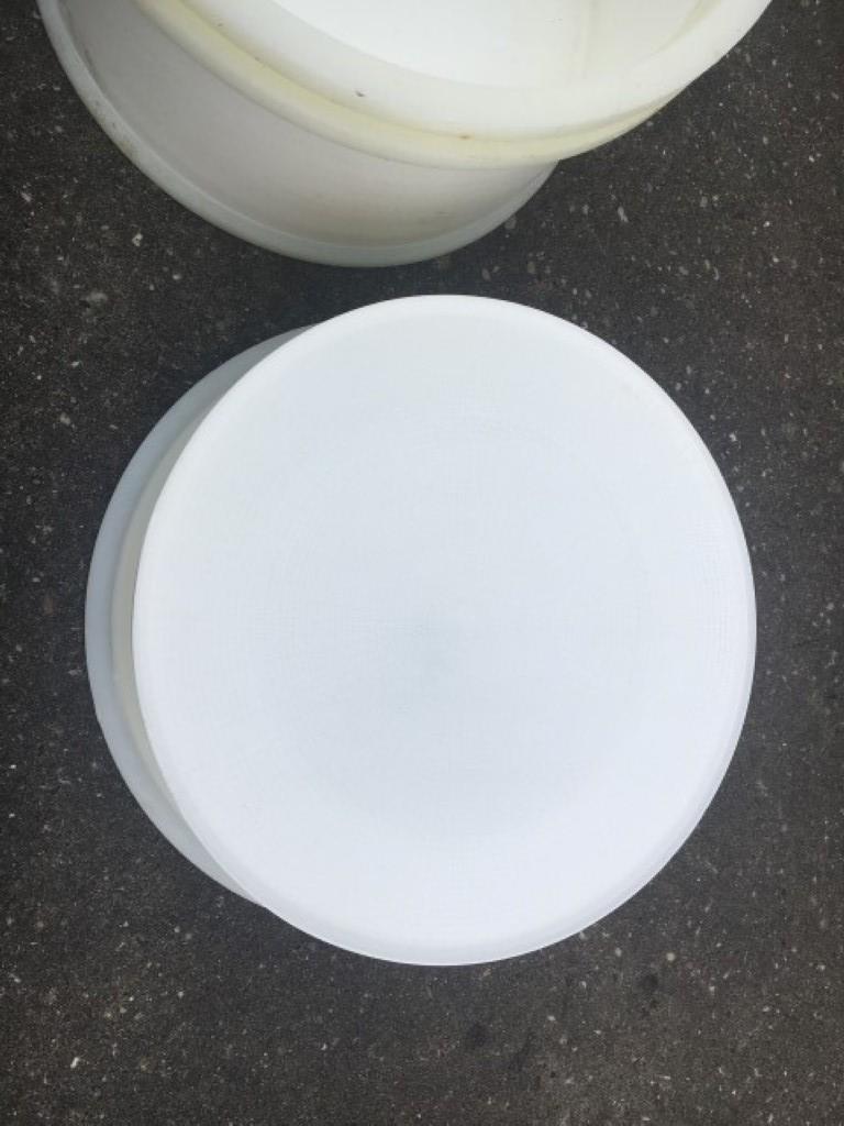 Single forms, Micro perforated. Cylindric with straight corners round shaped. Dimensions cheese: diameter 335 mm, height 140 mm. Weight: 10 kg per cheese. Including mould cover. In total 40 pieces available.