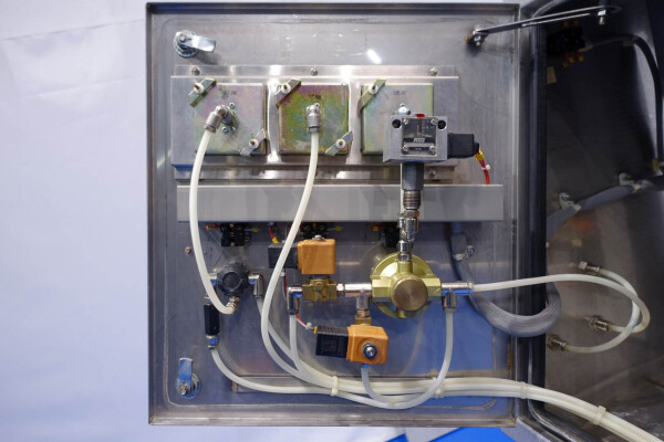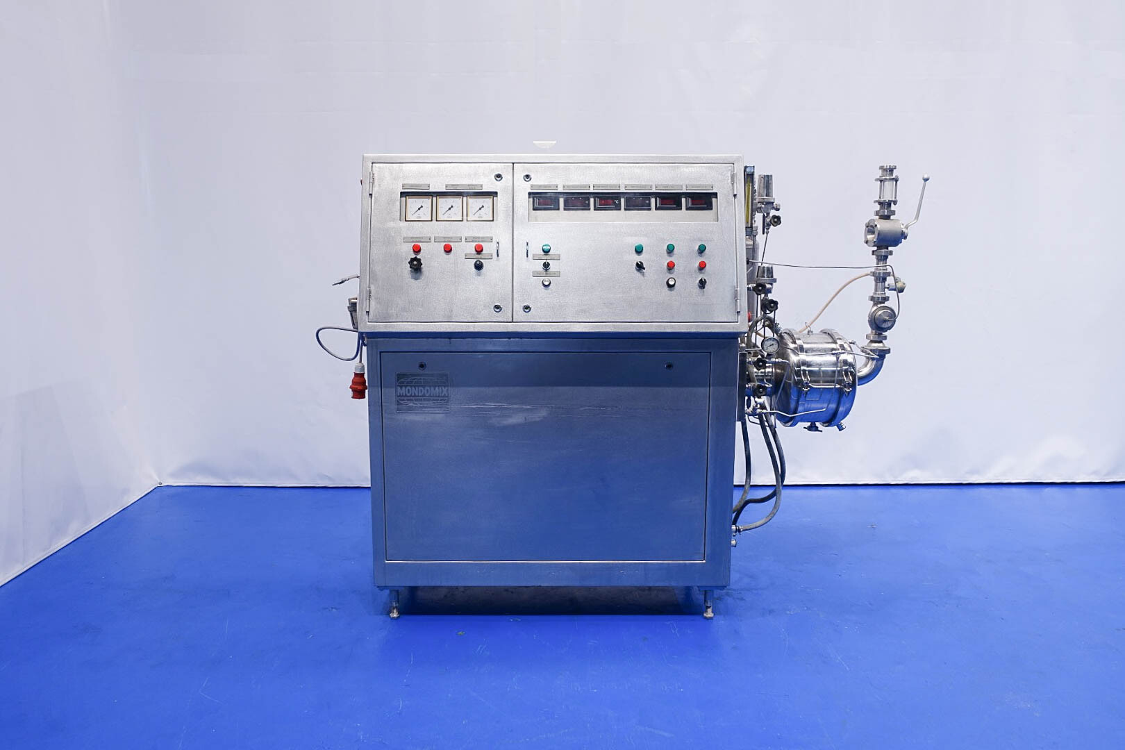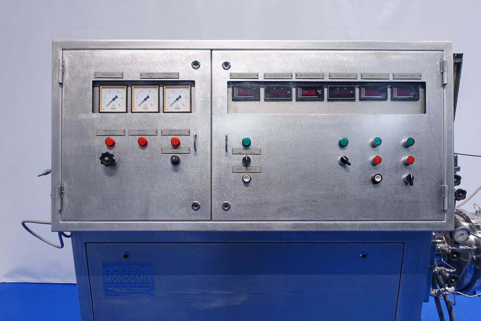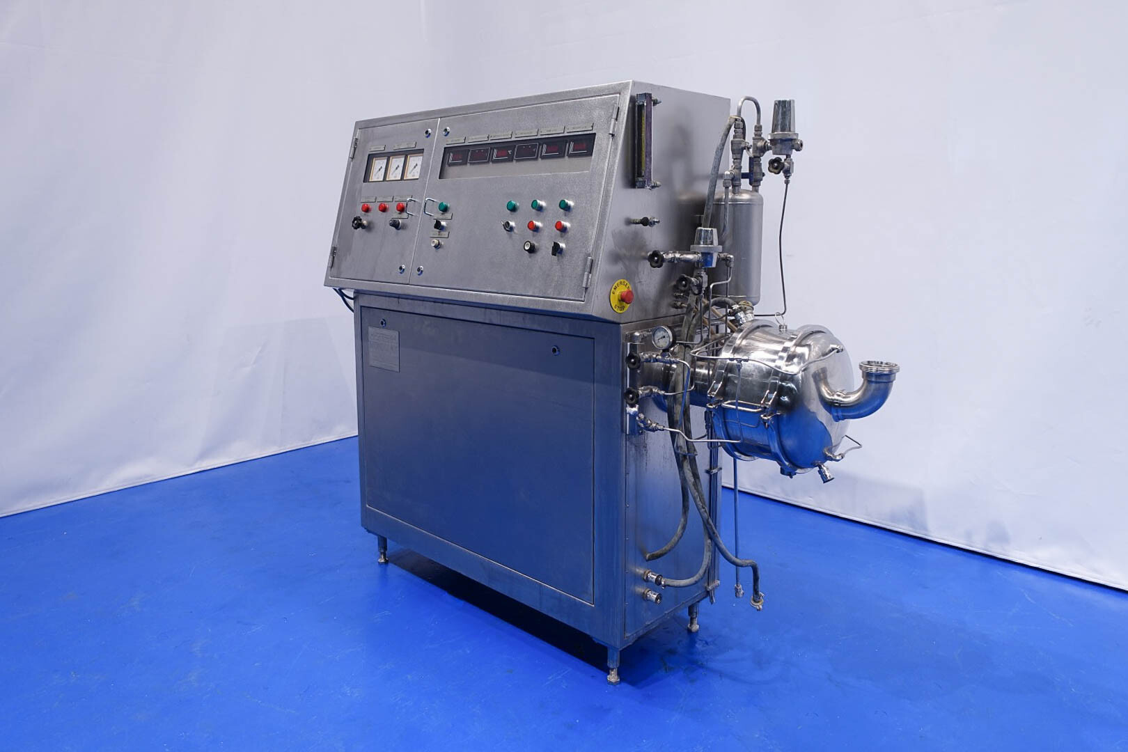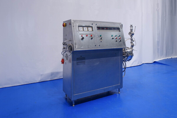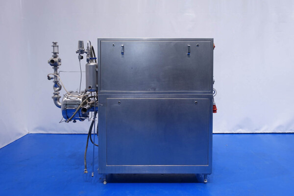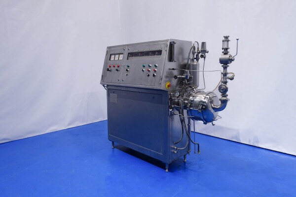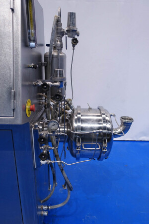 Aseptisch ontwerp continu beluchtingssysteem voor de zuivelindustrie en kan ook worden gebruikt voor bakkerijen en zoetwaren. Dubbelwandige kop met tegendrukventiel en 3-wegklep op uitlaat. Hoofdmotor 11 kW variabele snelheid 120-600 tpm. Lenze frequentieomvormer voor toevoerpomp, temperatuursensor op inlaat-/uitlaatwaterfilter, watercondensaatunit voor aseptisch afdichtingswater. Gasregelklep en gasstroomindicator. Bedieningspaneel met relais.
