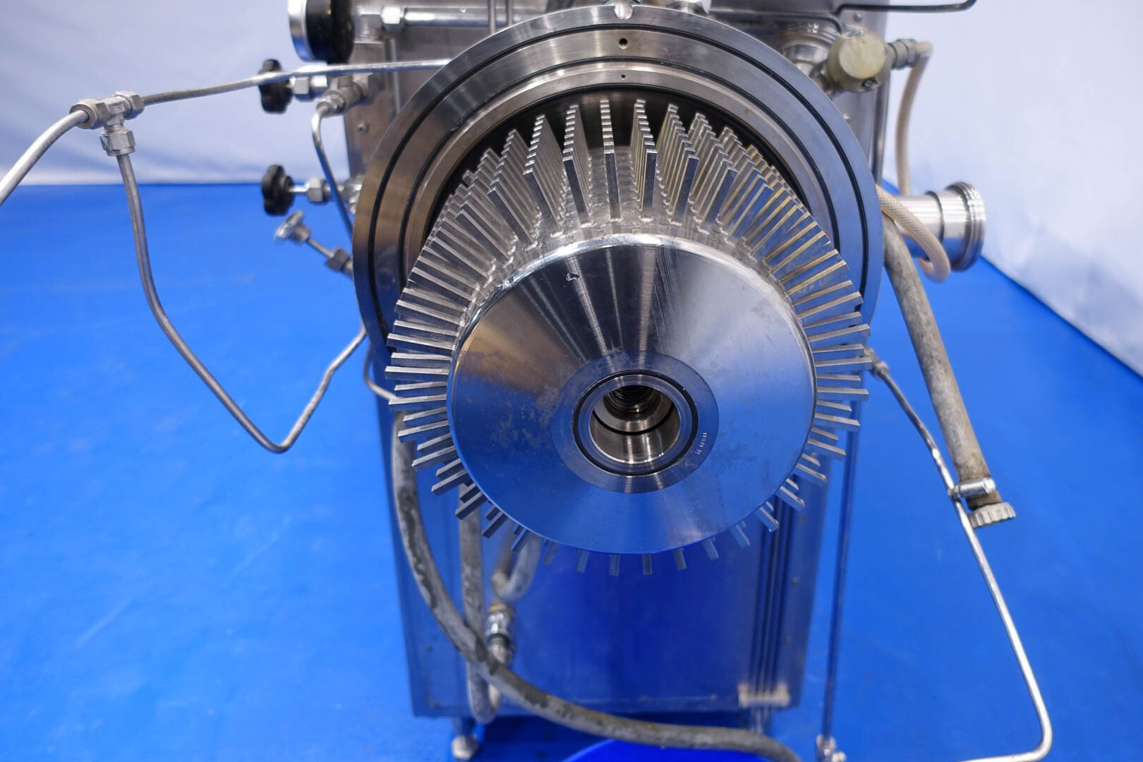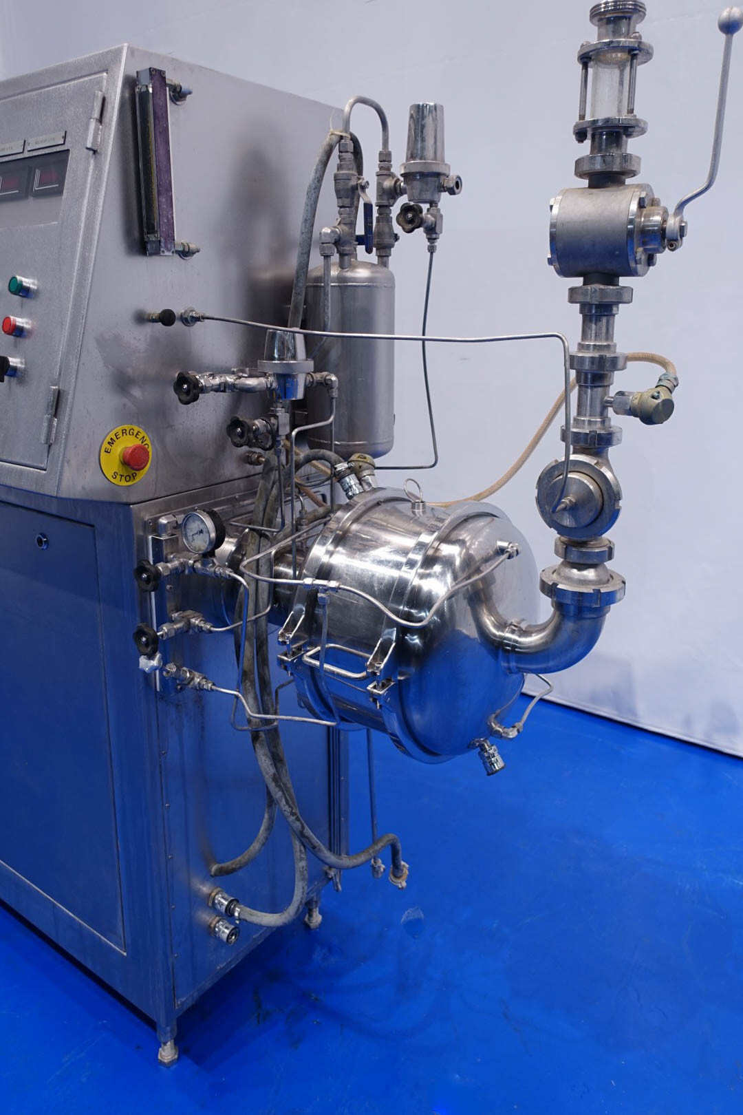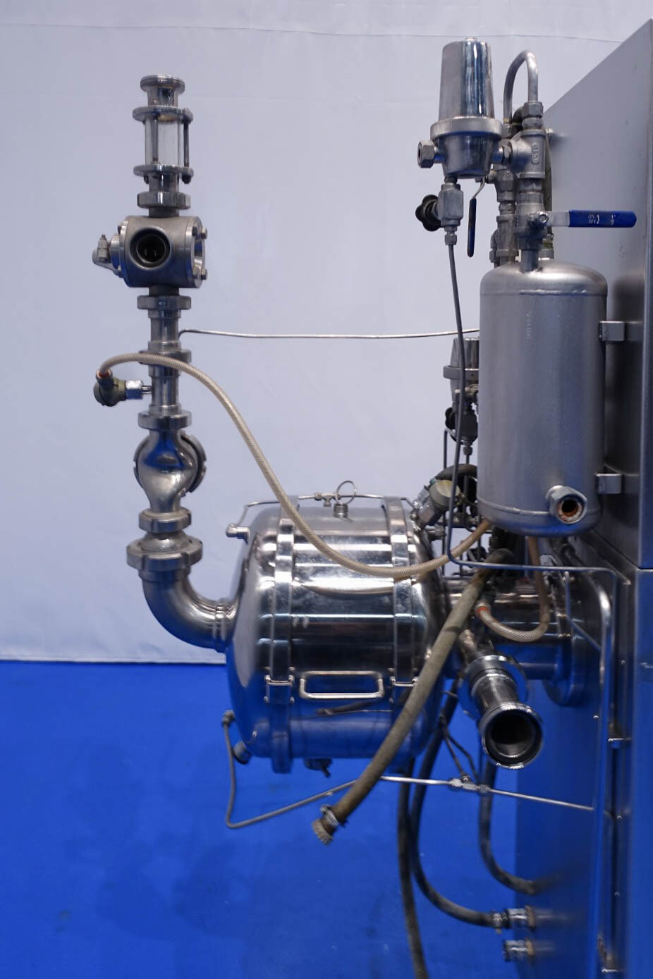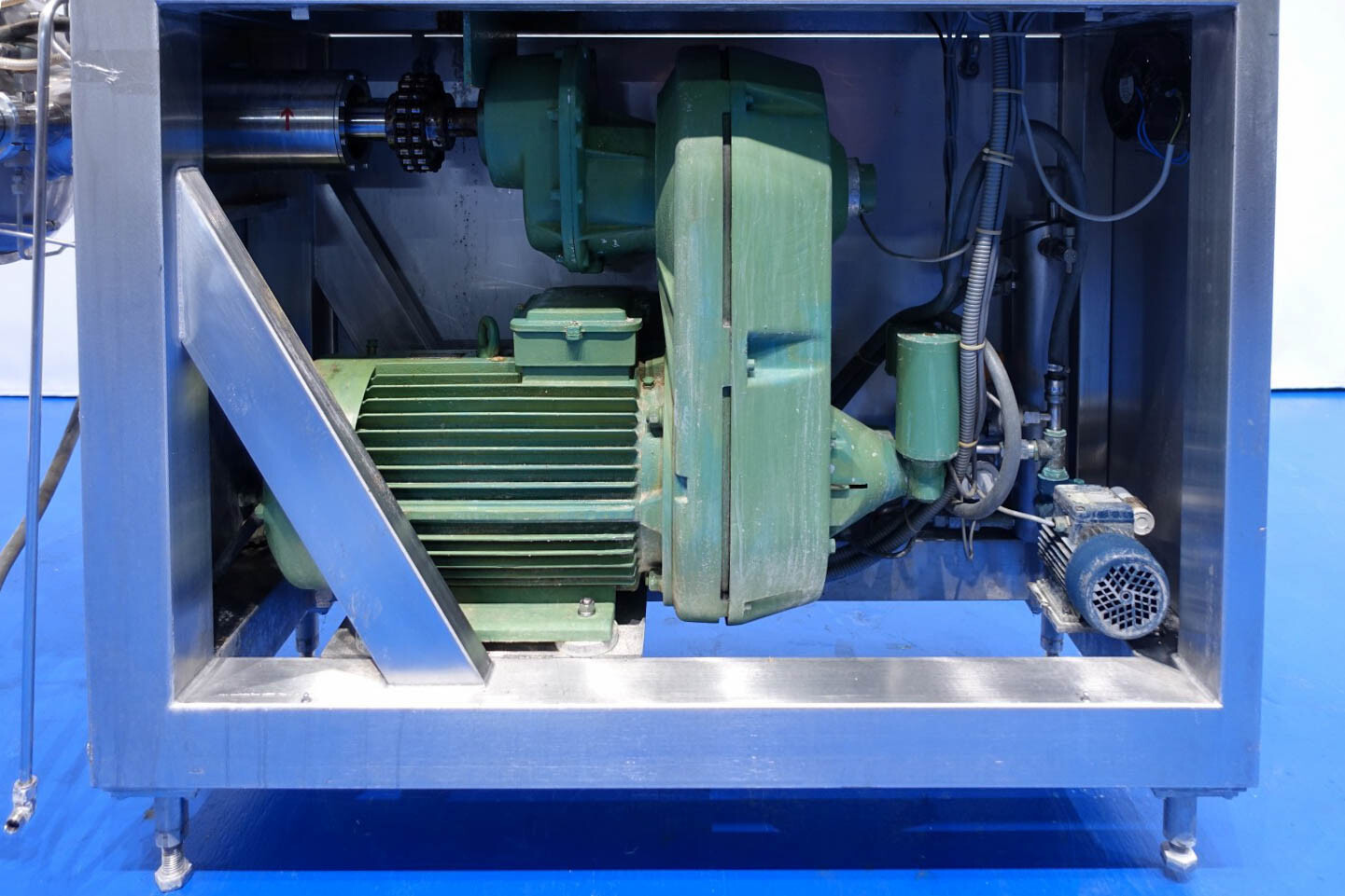 Aseptisch ontwerp continu beluchtingssysteem voor de zuivelindustrie en kan ook worden gebruikt voor bakkerijen en zoetwaren. Dubbelwandige kop met tegendrukventiel en 3-wegklep op uitlaat. Hoofdmotor 11 kW variabele snelheid 120-600 tpm. Lenze frequentieomvormer voor toevoerpomp, temperatuursensor op inlaat-/uitlaatwaterfilter, watercondensaatunit voor aseptisch afdichtingswater. Gasregelklep en gasstroomindicator. Bedieningspaneel met relais.