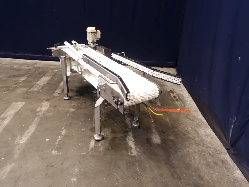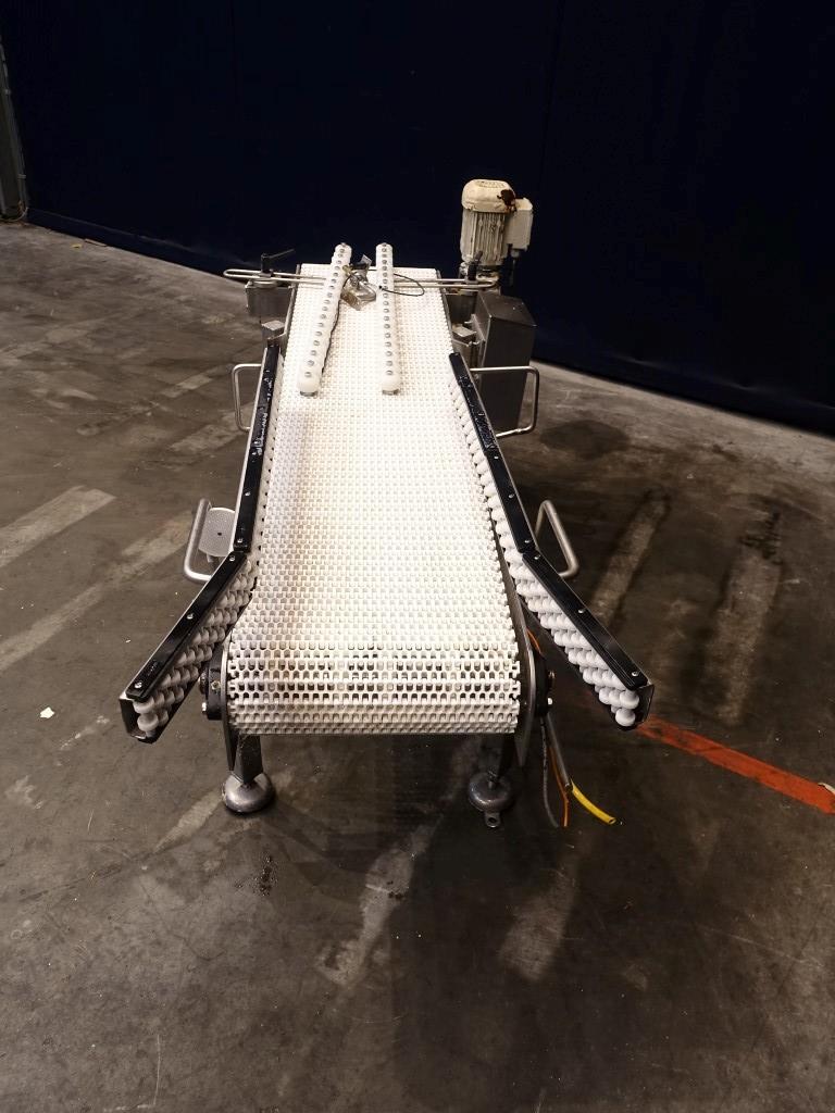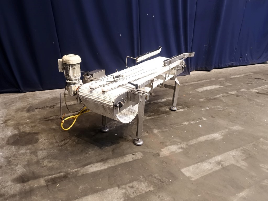 Chain conveyor. Chain width: 38 cm, length: 170 cm. Motor: 0,55 kW. Total dimensions: 180 x 70 x 90 cm.