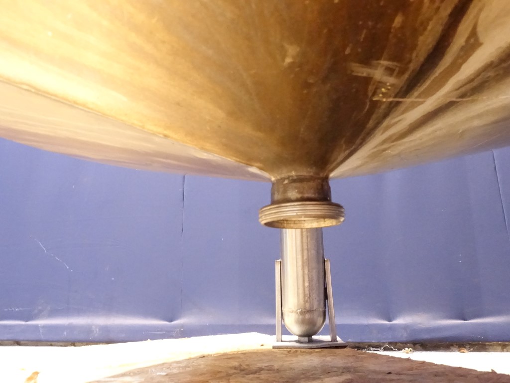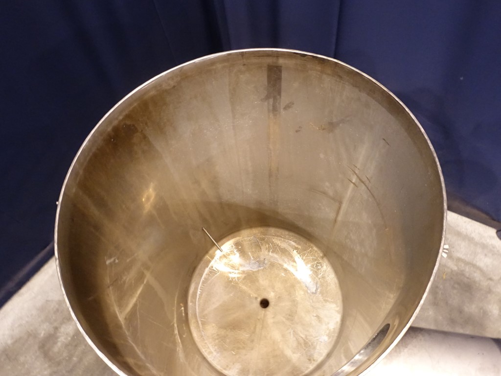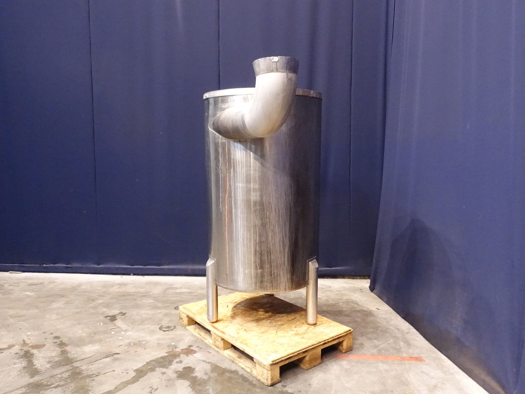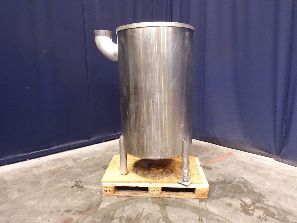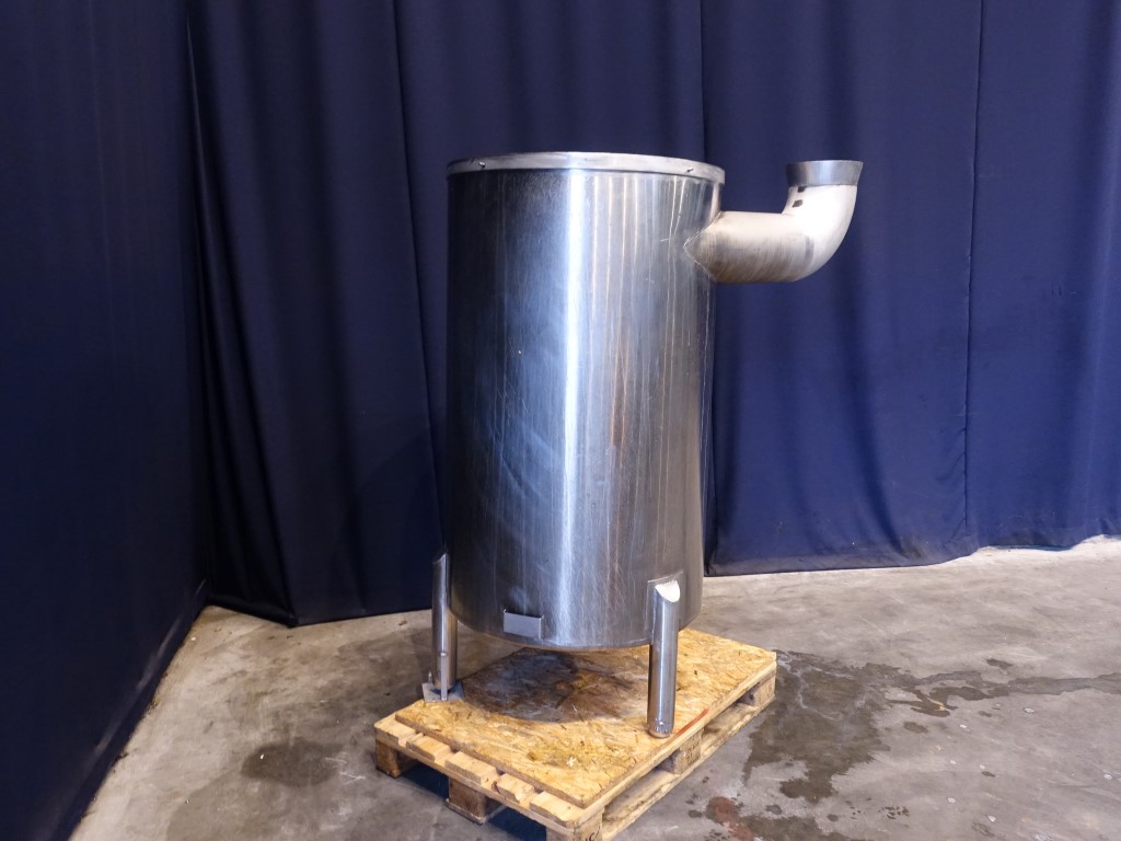Leveltank. Open top. Conical bottom. Product outlet 2'' DIN and outlet height: 16 cm. 3 Feet. Inside dimensions of tank, diameter 84 cm and height 140 cm.
