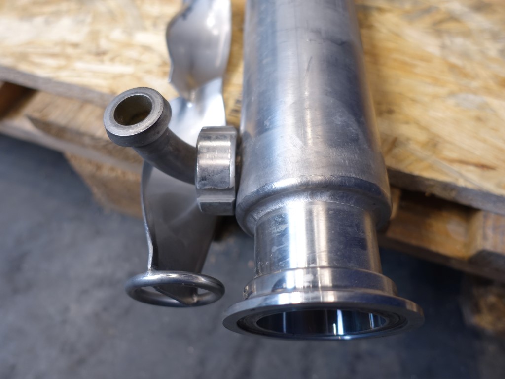 Monotube. 1 Tube with internal spiral. Length: 150 cm, outside diameter 70 mm, inside diameter 50 mm. Connections, product: DN50 Clamp and service: DN16, DIN.