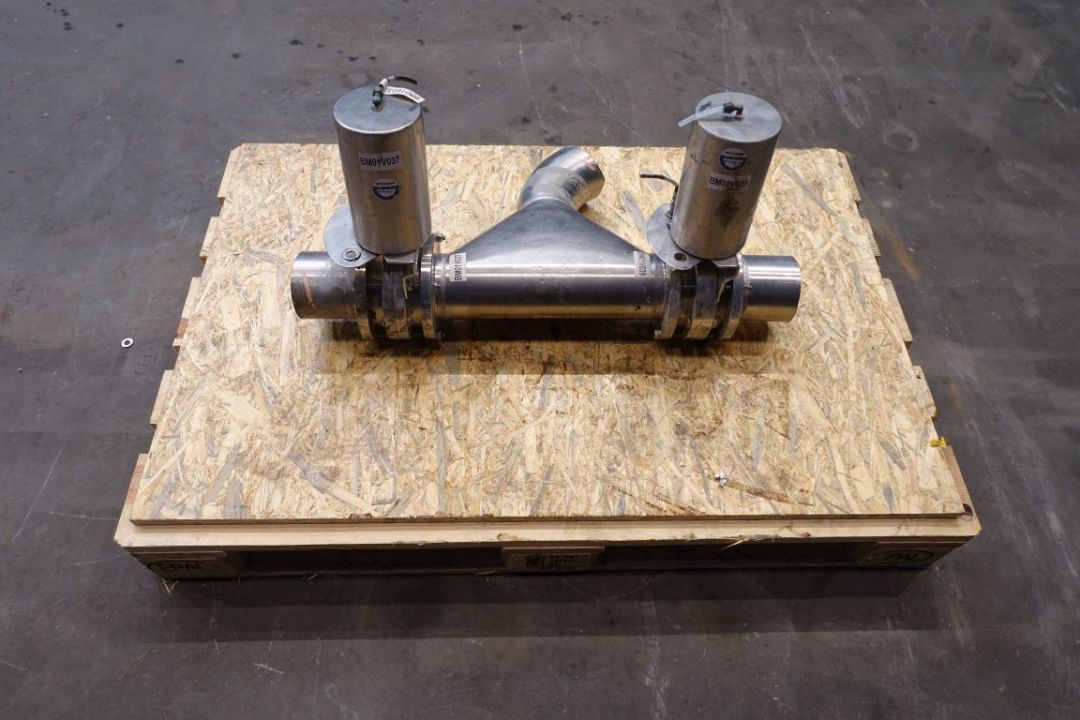 1x Trouser piece, 100 mm. 2x pneumatic valves, DN100.