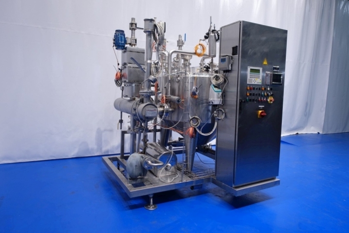Skid mounted CIP unit which consists of: Tank, tubular heat exchanger and Centrifugal pump. Double jacketed SS tank capacity 1.000 ltrs. - with level sensors on 300/600/900ltr - Temperature sensor, Breather and round manhole in top, spray bowl. Tubular heat exchanger on outlet to heat the cleaing detergent make: IGEFA- type: 203-220-26-900-18 - built in 1991 - no. 29339 - heating surface 2,9 m2 - capacity 17/21 ltrs. - tube length 110 cm - tube head Ø 21 cm - 52 pipes Ø 16,5 mm. Centrifugal pump make: Wiking- 5,5 kW - 11 A - 50 Hz - 2.885 rpm - impellor Ø 175 mm - connections in: DN80 Din - out: DN65 Din. Controls Siemens Simatic. Total dimensions: 230x212x273 (lxwxh) cm - weight: 1.158 kg's. Documentation: PID available.