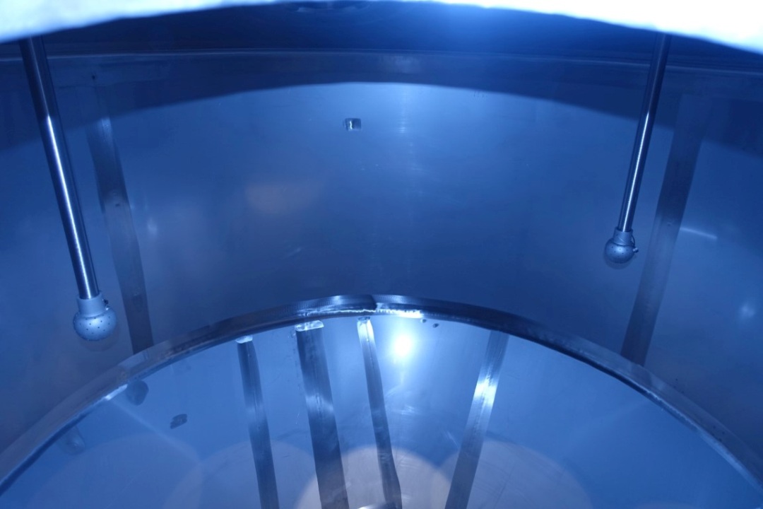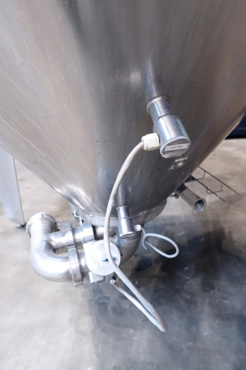 Vertical Quark silo, stark conical for viscose products (like freshcheese/quark), single jacketed. Product outlet by (2 outlets 3" each) with pneumatic butterfly. 2 level sensor and 1 temp, sensor. 2 CIP spray bowl(s). connection for sterile air, Manhole in top, round . 3 Adjustable feet. Inside dimensions of tank: Ø 200cm Total dimensions: 2,3 x h: 3,3 meter.