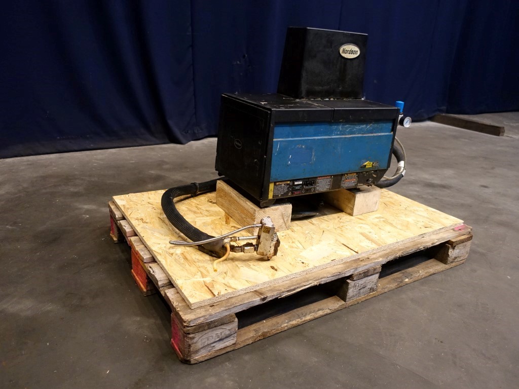Hotmelt unit with 1 outgoing hose. Length of the hose: 120 cm. 2 glue dosing nozzles.
