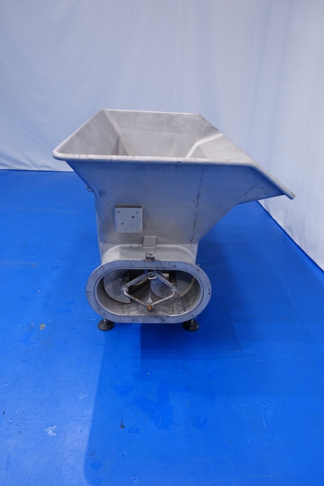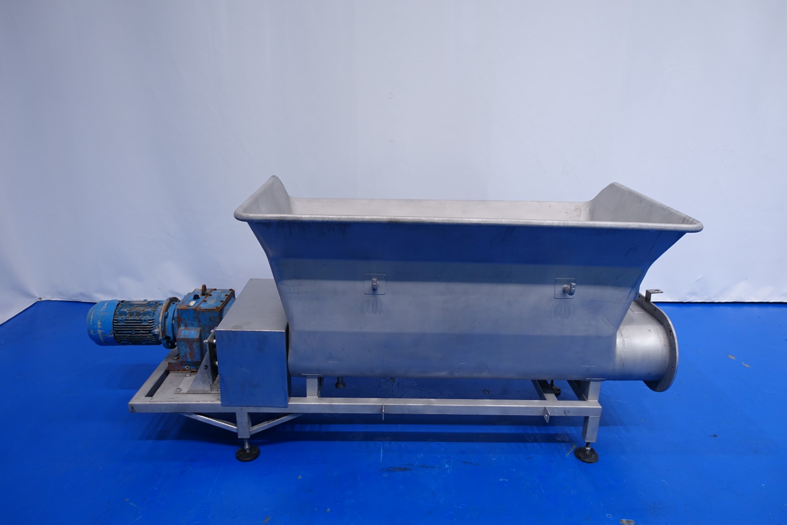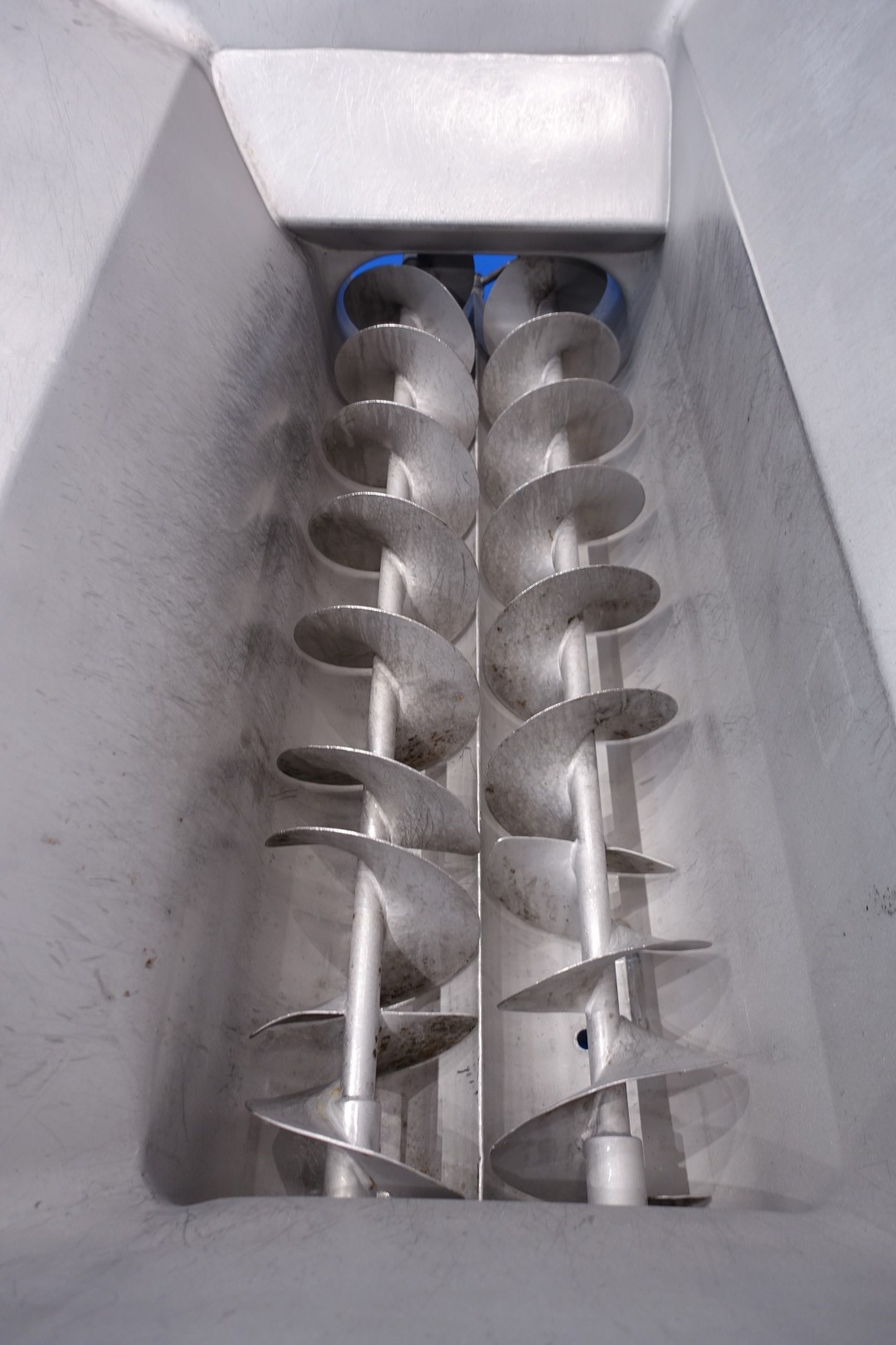 Open butter silo. 2 Augers with 1 motor. Length of the augers: 155 cm. Motor power: 4,0 kW - 8,1 A - 50 Hz - 1.440 rpm. Oval flange connection outfeed for butterpump 62x37,5 cm. Connections 2 x 1" Din. Total outside dimensions: 262x113x112 (lxwxh) cm, weight: 377 kg.