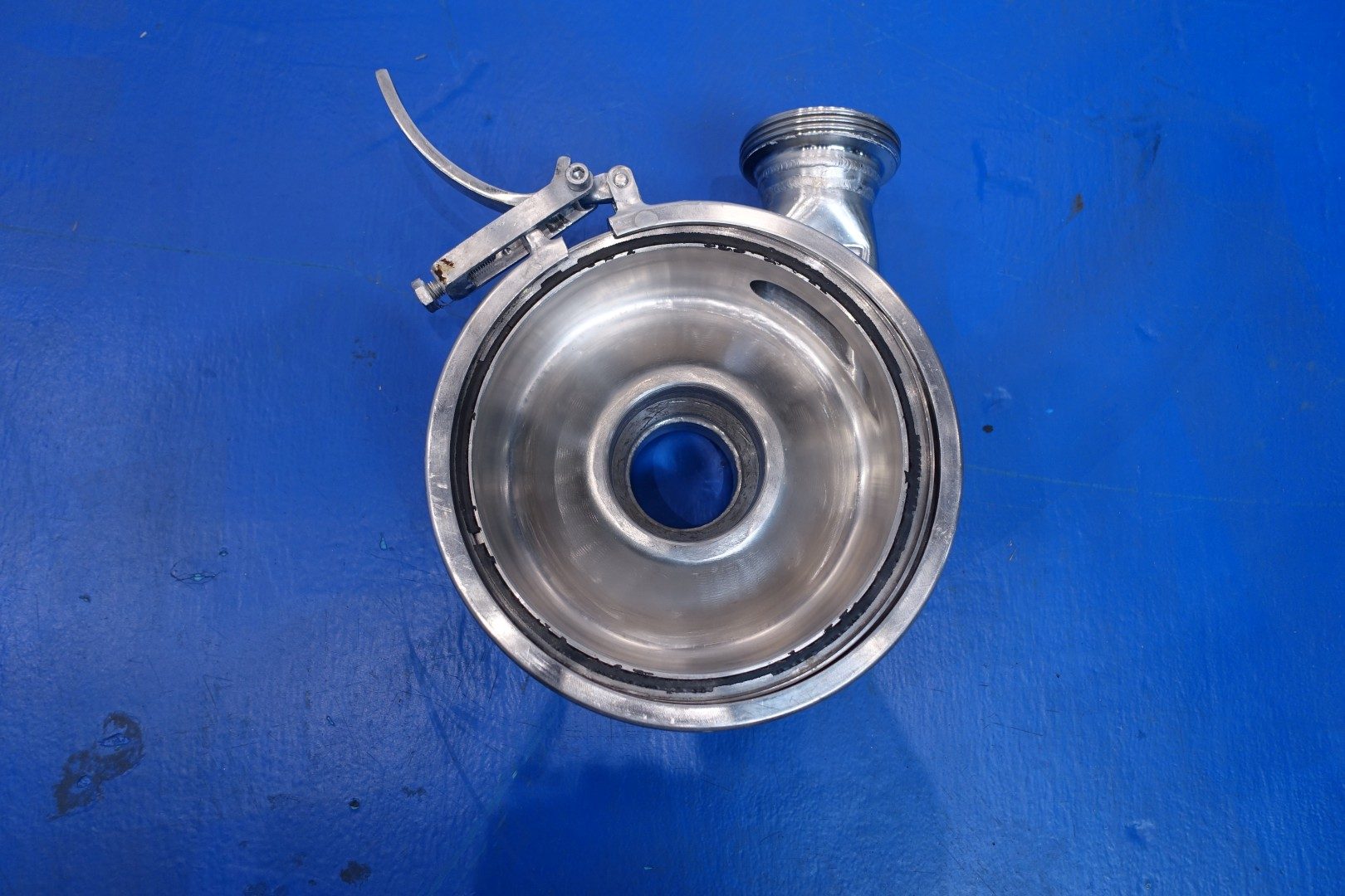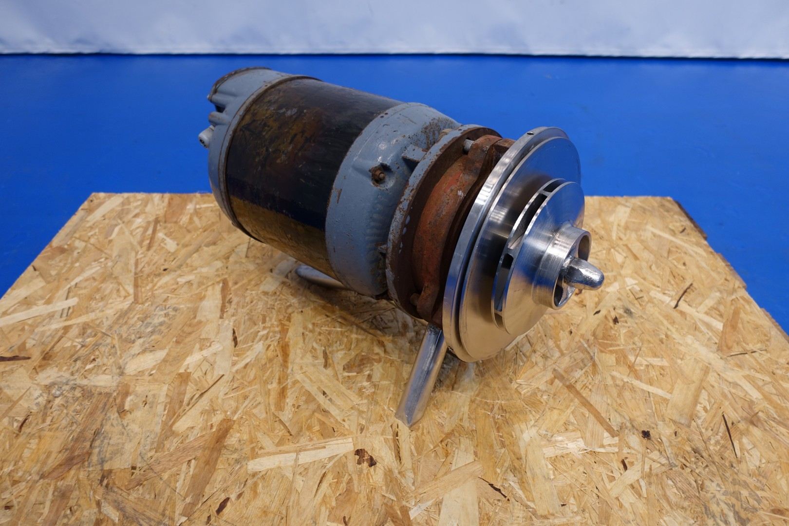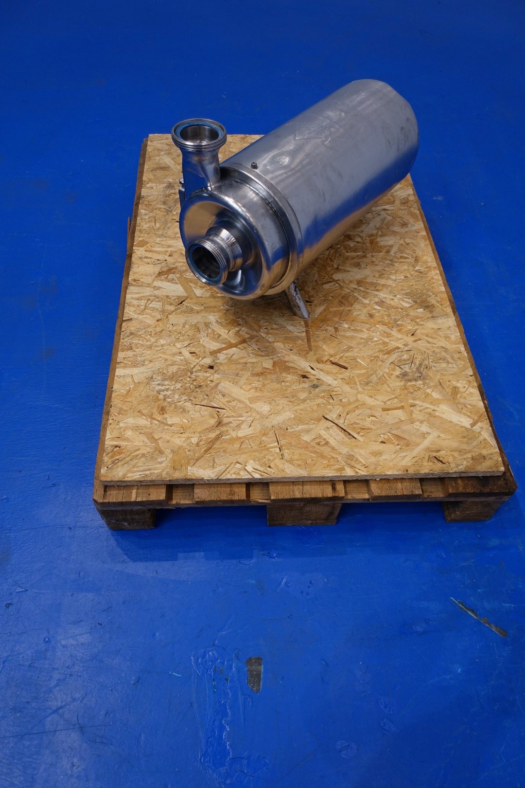 Sanitary centrifugal pump. Current motor: 7,5 kW - 11,0 A - 2.860 rpm - 50 Hz. Impellor diameter: 170 mm. Connections: (In) 3" Din / (Out) 3'' DIN. Total dimensions: 70x26x40 (lxwxh) cm - weight: 96 kg.