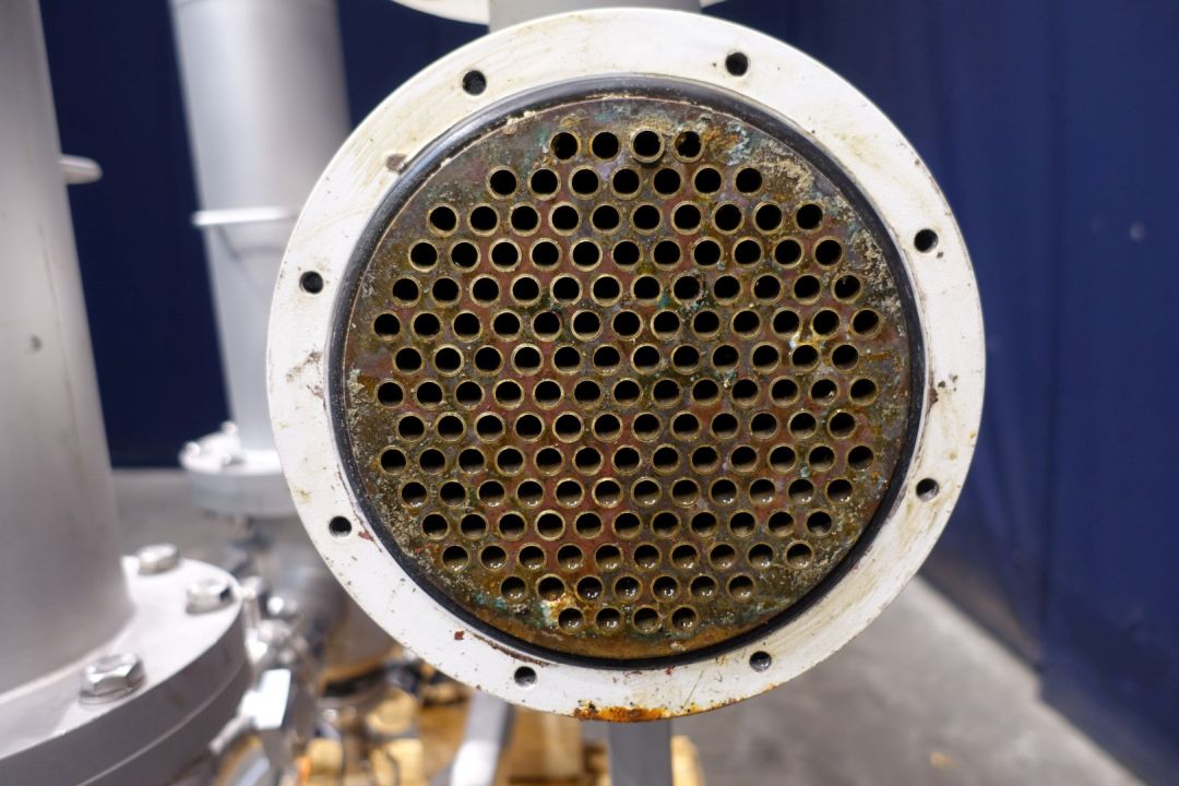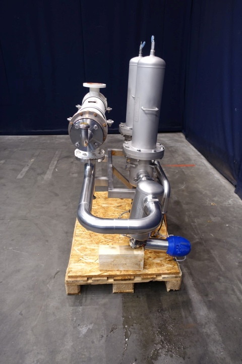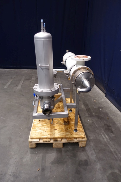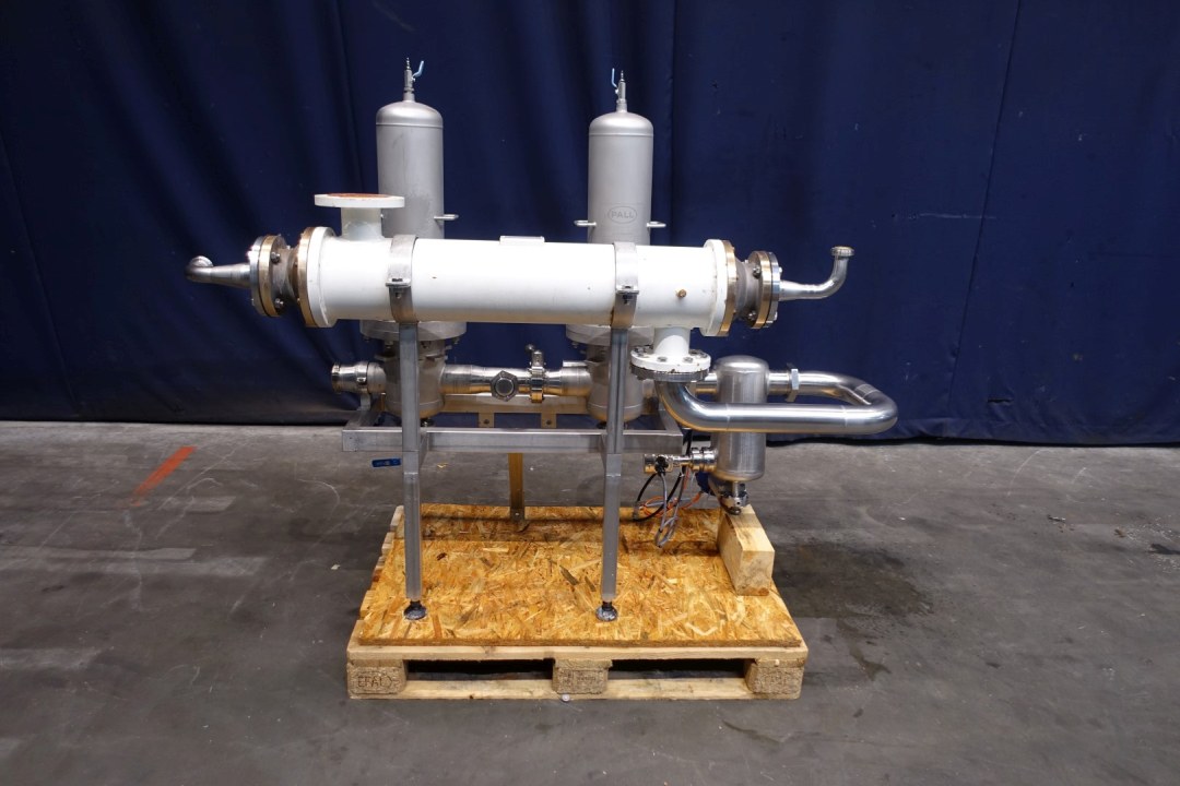 2 Air/gas filter housings in stainless on a frame each filterhous with 3 filters. With Total dimensions: 186x70x145 mm (lxwxh) - weight: 292 kg's. Cupper tubular heat exchanger to control air temperature.