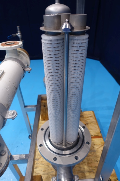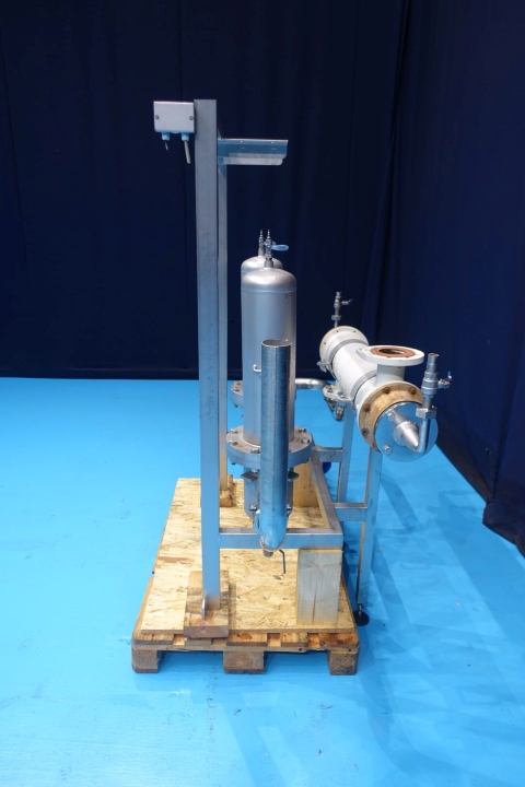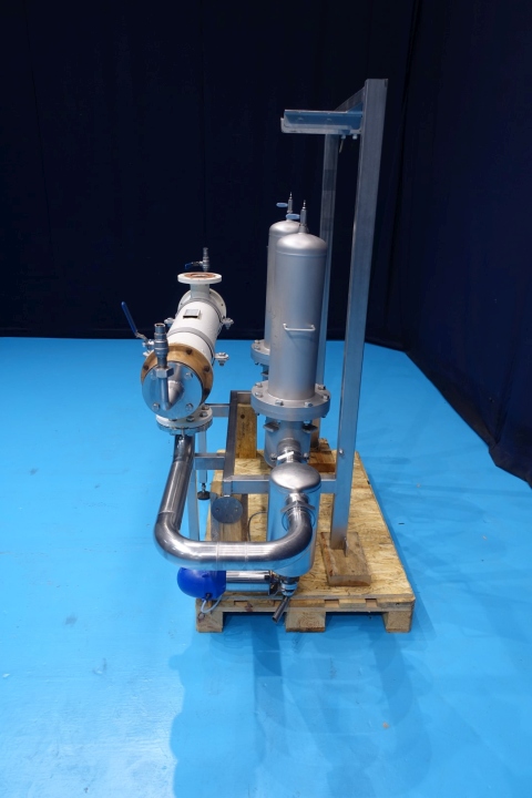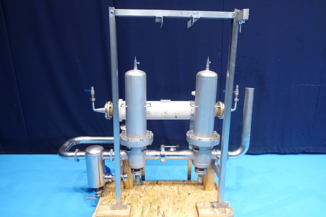 Set with 2 x Pall air ss houding filter and valve. On stainless steel frame. With 2 x Pall air filter in SS housing. Each filter with 3 filters, temperature up to 140°C and 5 bar. Total dimensions: 180x73x183 (lxwxh) cm - weight: 310 kg. THE for air. Multitube, 1 compartment, Straight design, 151 tubes, 1 section, Length: 96 cm, outer diameter 180 mm. Inner diameter of tubes: 8 mm.