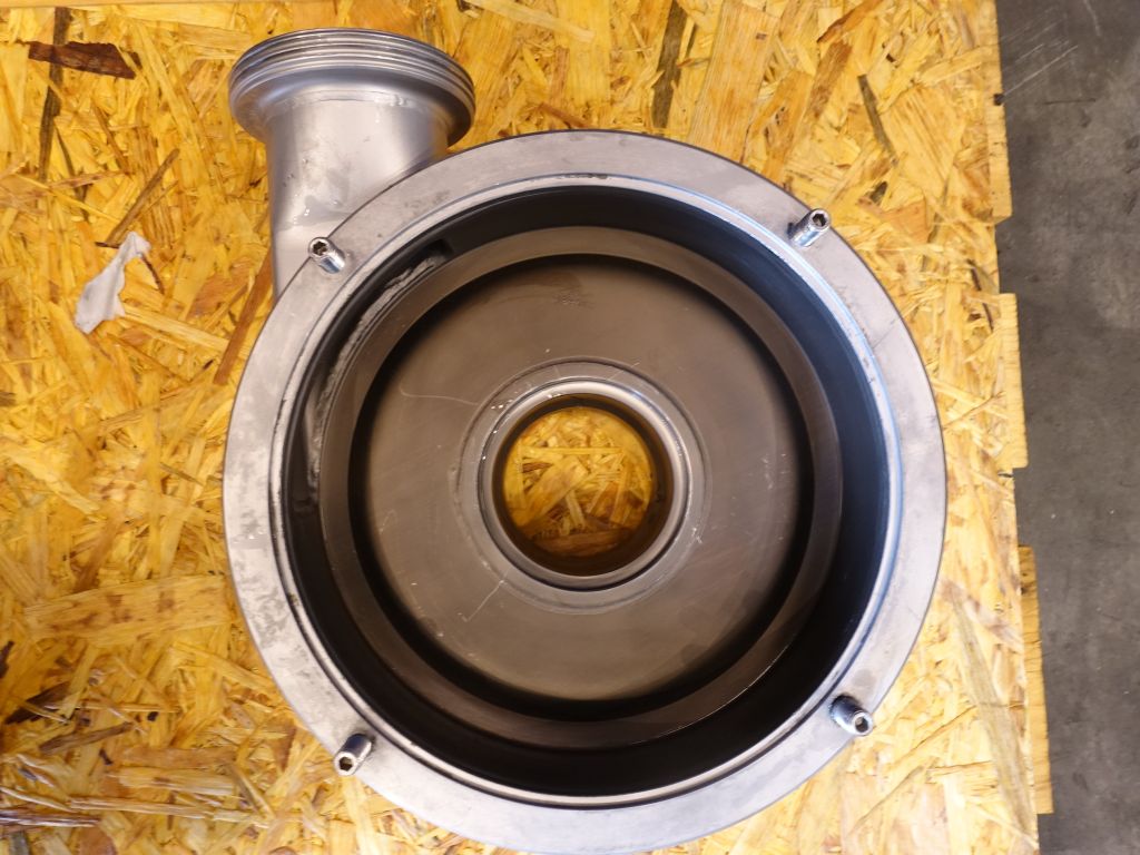 Sanitary centrifugal pump. Current motor: 11 kW -23 A - rpm. Impellor diameter: 180 mm. Pressure: 3,5 bar. Connections: 3'' / 3'', DIN.