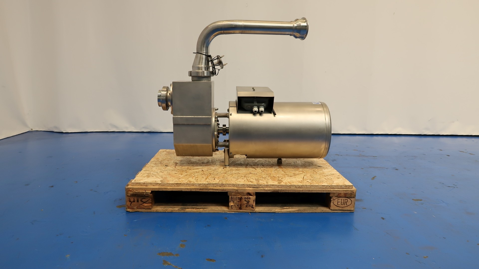 Self priming pump. Motor: 7,5 kW - 16 A - 1.455 rpm - 50 Hz. Impellor diameter: 165 mm. Pressure: 0,6 (90m3) 2,5 bar (45m3). Connections: (in) 116 mm DIN coupling / (out) 116 Try clamp. With non return valve. Dimensions: 100x35x90 (lxwxh) cm - weight: 226 kg.