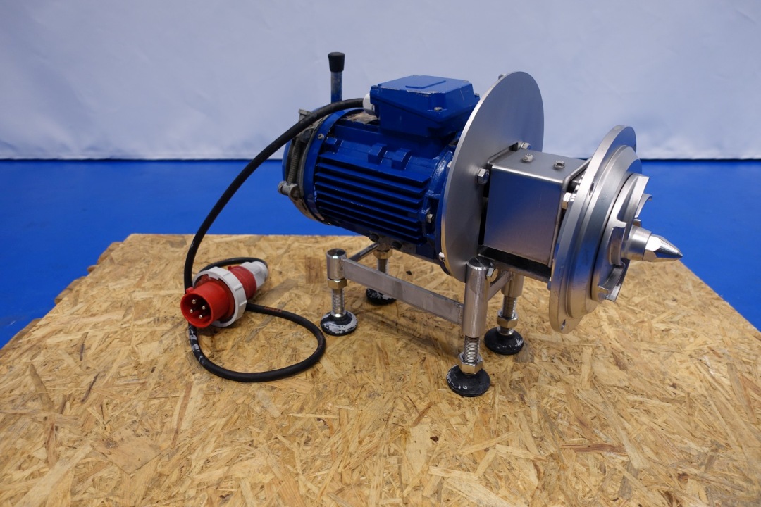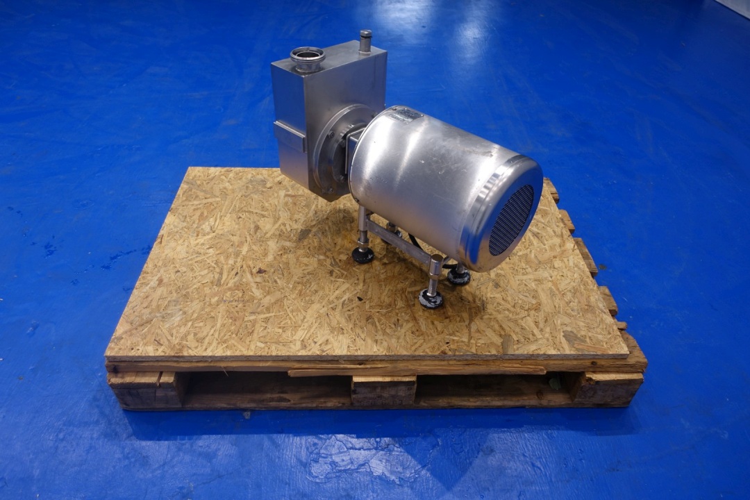 Sanitary Selfpriming centrifugal pump. Version: KAM-2-0220-S1-AF. Power: 2,2 kW - 8,2 A -2.870 rpm - 50 Hz. Impellor diameter: 145 mm. Connections In: 2" Din - Out: 2" Din. Pressure 15 Mvk / ca. 1,5 bar. Total weight: 88 kg.
