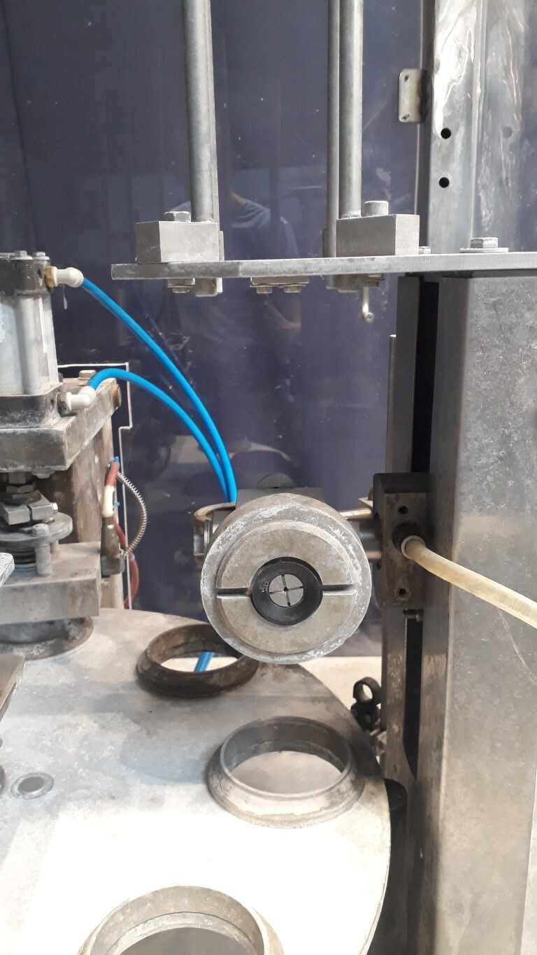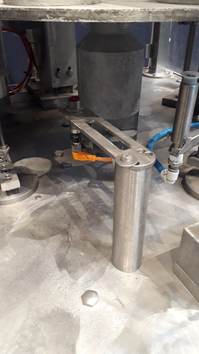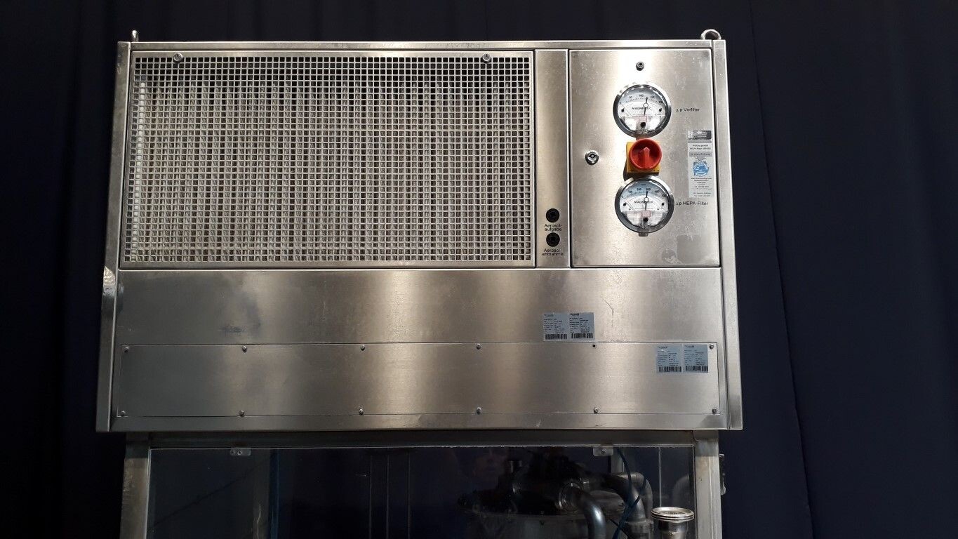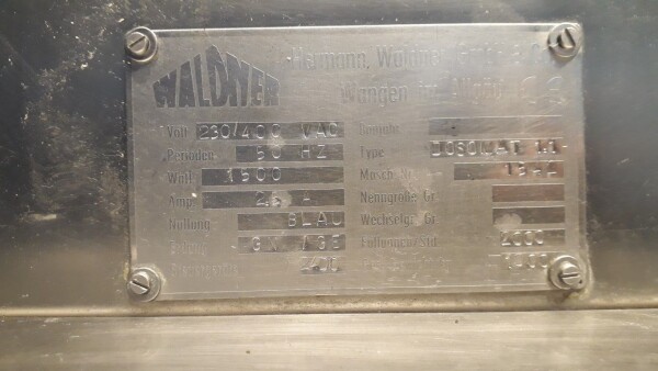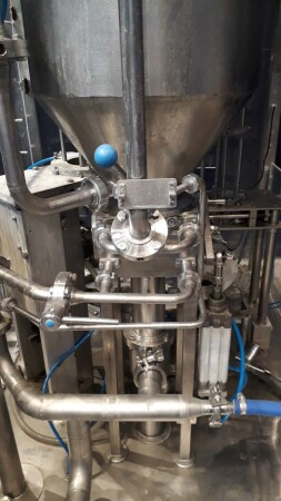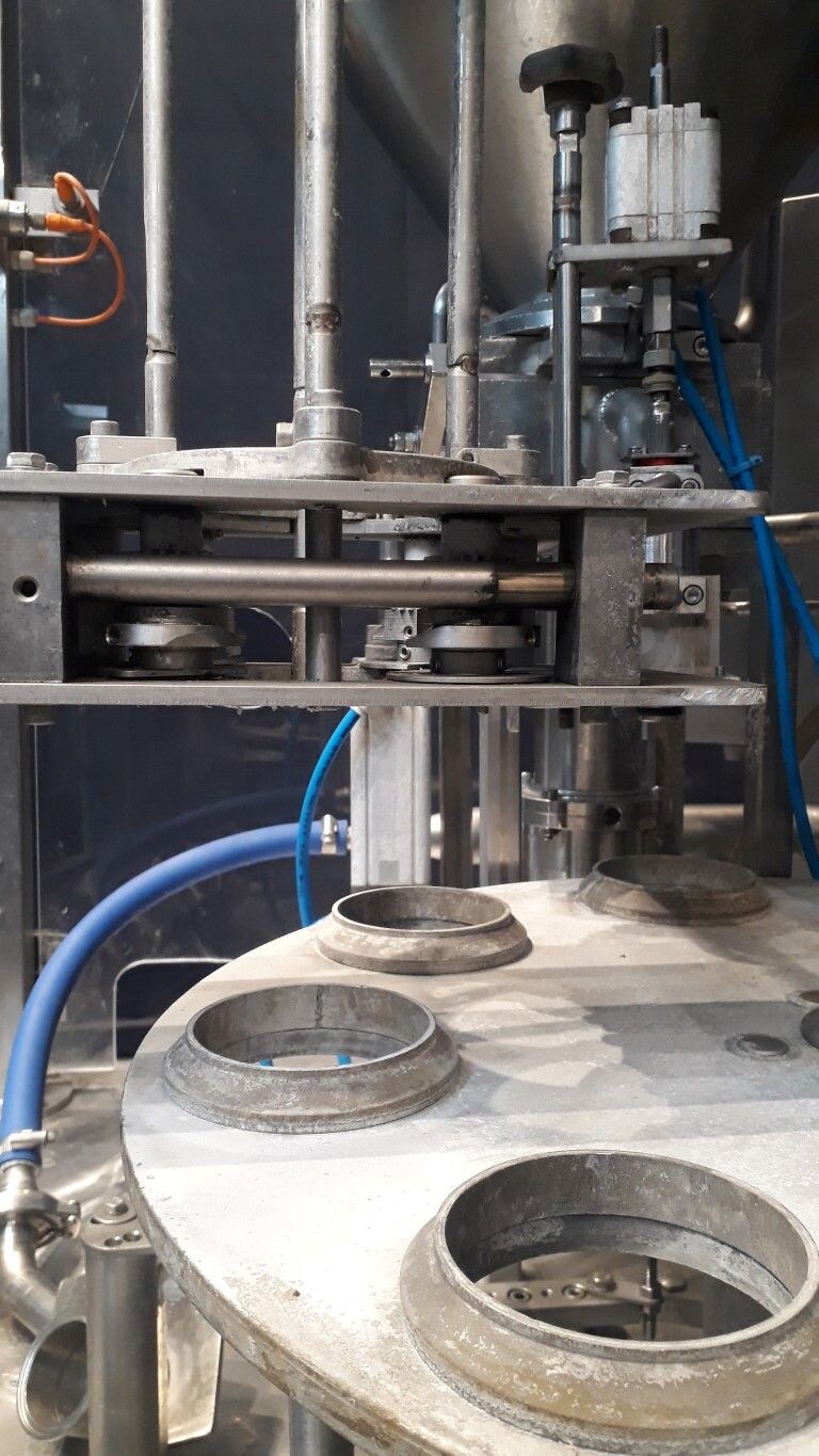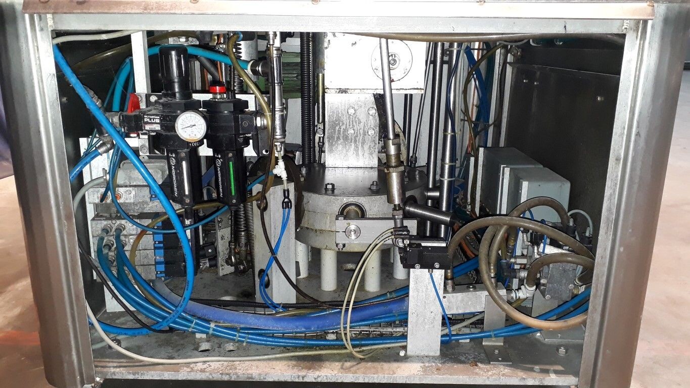 1-kops rondloper, beker vulmachine. Beker maat (rond): 95 mm. Stations: ontstapelen van bekers, detectie indien geen beker, hoofddoseur (150 - 500 ml) voor vloeibare viscose producten. 3 verschillende vulmonden beschikbaar voor verschillende viscositeiten. Inclusief trechter (CIP reinigbaar). Seal opleggen door vacuüm, hitte sealing en druk deksel. Met uitvoerband. Machine heeft plexiglas veiligheidsdeuren (1 deur ontbreekt). Machine is in een “clean” uitvoering met een Hepa steriel luchtsysteem met ventilator bovenop de machine. Besturing: Siemens, model: S5 en HMI. Documentatie aanwezig. Video van een testproductie met water op onze website. |