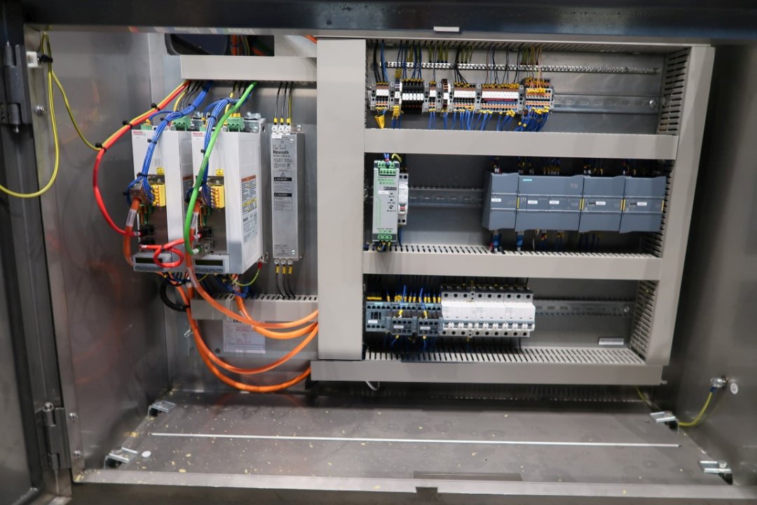 Unused experimental machine for forming and pressing Edammer cheese to small cheese balls (in combination with vacuum filler, which is excluded) by mold principle. including servo motors, siemens touch screen panel. Capacity: 40 balls per minute. Power 6 kW - 400 V - 50 Hz. Including press, frame and outfeed slide. Complete manual and electric scheme available in dutch language. Total dimensions: 108 x 130 x 198 cm.