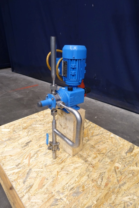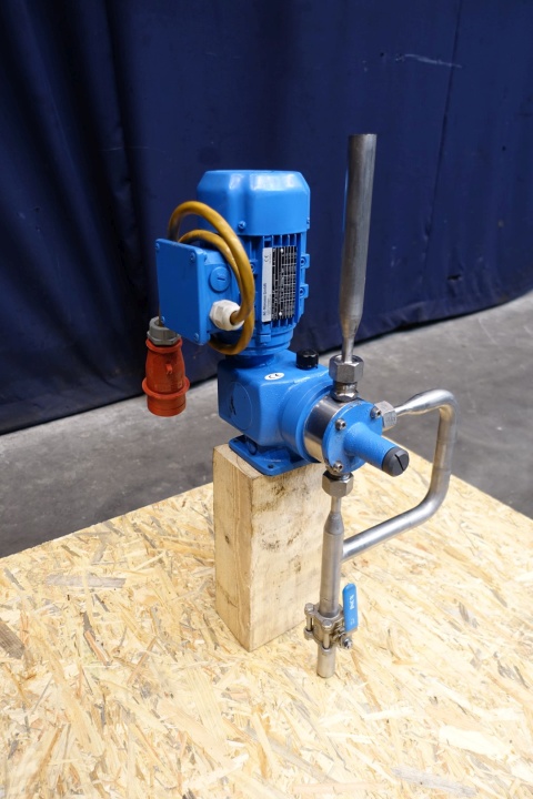 Sera (Seybert & Rahier) dosing pump, manual adjustable. Pressure P1 min -0,3/0 bar, P2 max 10 bar. Qn 0-75 l/h, Nn 150 l/min. AC motor: 0,18 kW - 0,59 A - 1.330 rpm - 50 Hz. Dimensions: 34x27x69 (lxwxh) cm - weight: 47 kg.
