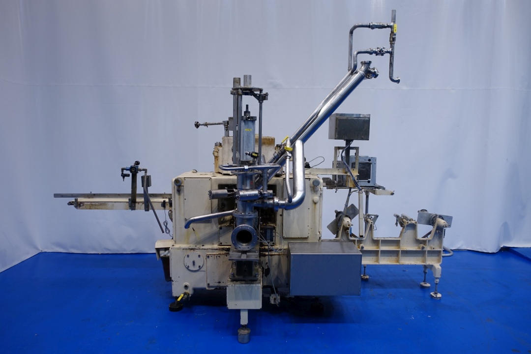 Full Automatic filling and wrapping machine for Margarine in aluminum foil or parchment paper. Product feed by direct link up with compensator and return line. Date coder by inkjet printer, SmartDateX40 thermal printer. Photo cell for print centring device and paper correction by spot mark. Servo drive on paperfeed, Double roll infeed. Outfeed conveyor - length ca. 175 cm. Format sets on this machine: 140x80x46mm, 500 gram. Control panel PLC control Siemens Simatic S5. Total dimensions: 450x190x280 (lxwxh) cm - total weight: 3.570 kg's.