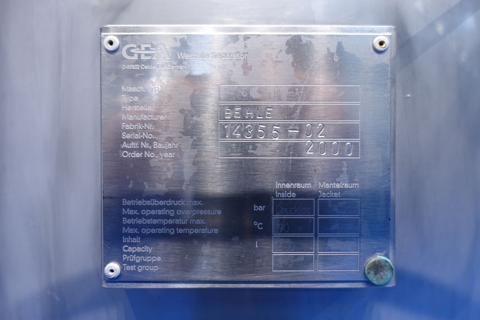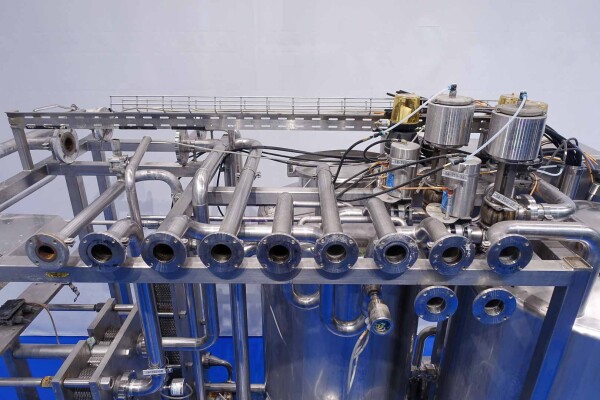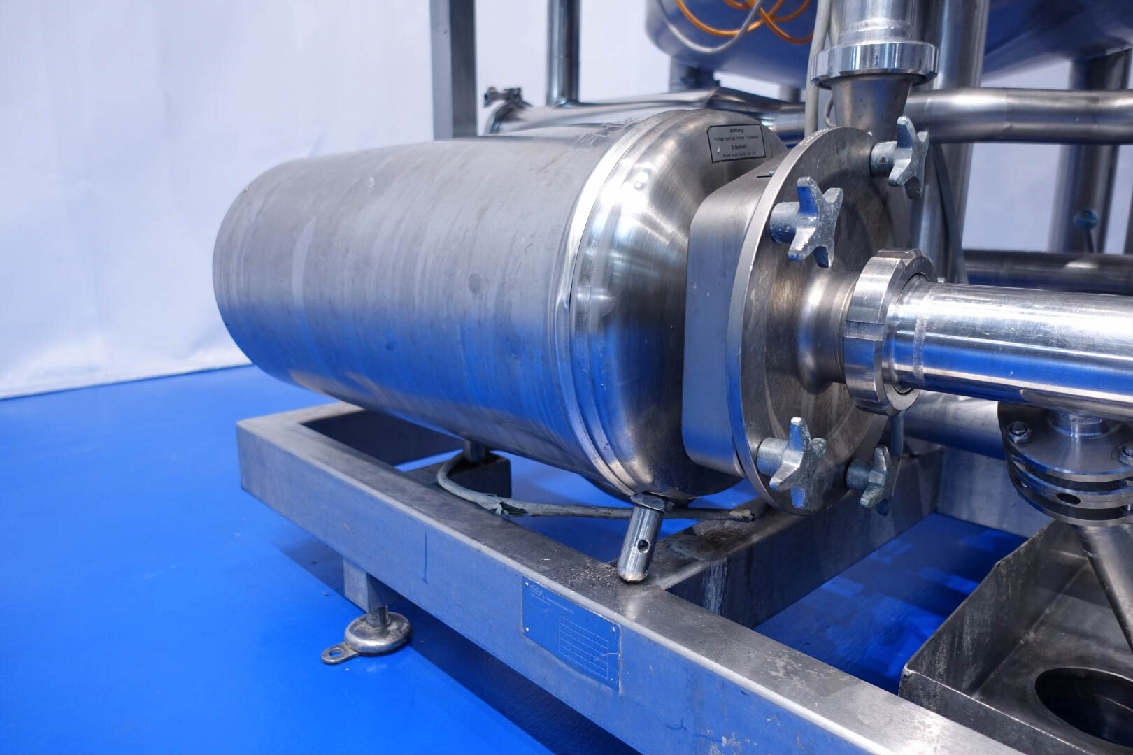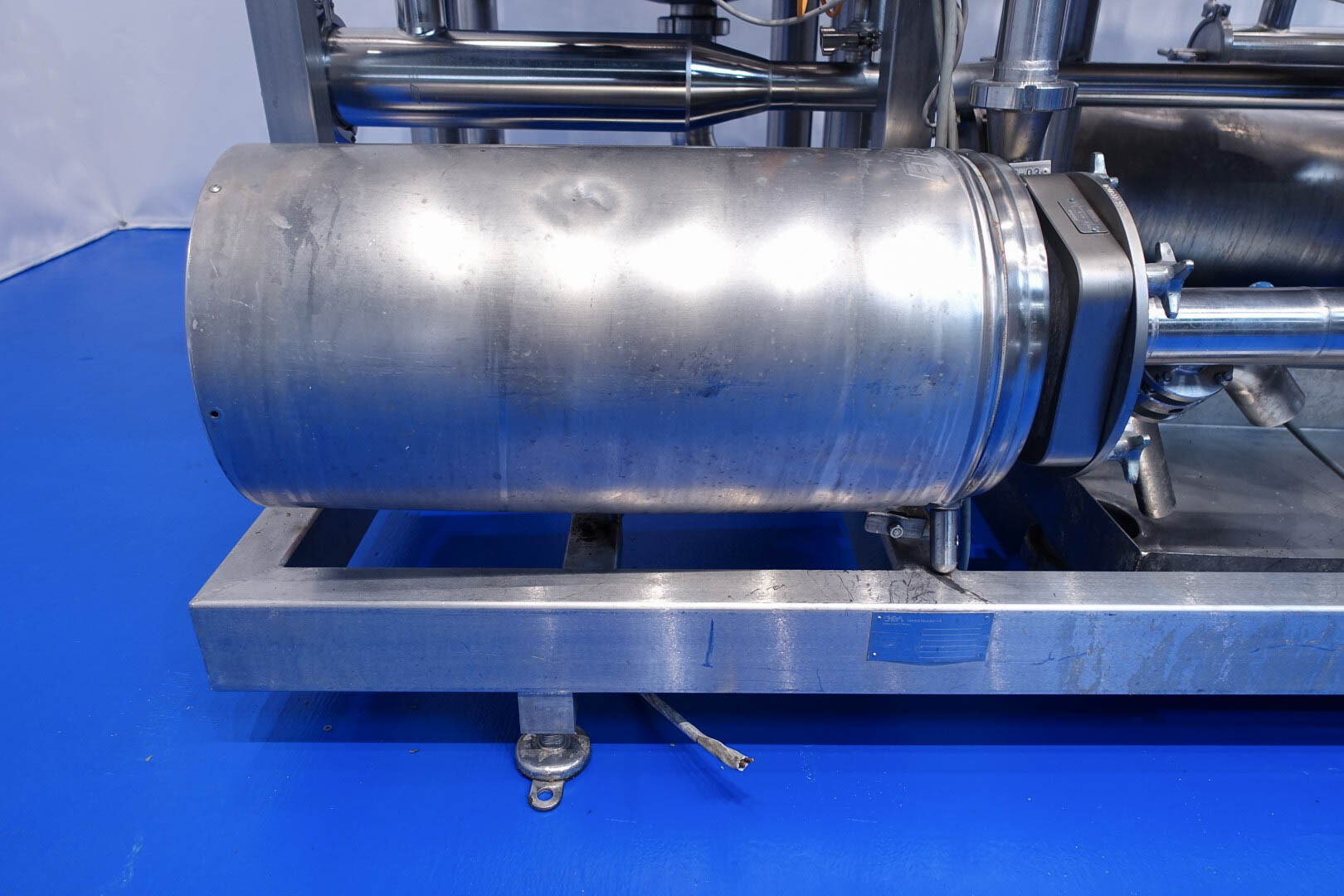 Skid gemonteerde dubbele CIP unit, 2 onafhankelijke CIP units gemonteerd in 1 frame. Elke unit bestaat uit: balansvat 500 liter, Fristam centrifugaalpomp CIP+ pomp, filter en een platenwarmtewisselaar. Details pomp: Fristam type: FP742 A - nr. 0443440080 motor: ABM 5,5 kW - 12 A - 2.890 tpm - 50 Hz - waaier Ø 175 mm - aansluitingen in: 2,5" Din - uit: 2" Din. Pomp 2 identiek alleen nr. 2 0443440081 en motor: 5,5 kW - 10,3 A - 2.930 tpm., beide geven 25-50m3/h bij >4bar - aansluitingen in: 3" Din - uit: 2" Din. 2x GEA platenwarmtewisselaar om het reinigingsmiddel te verwarmen tot de ingestelde temperatuur. Beide type: VT20CDS-C-10 - nr.: 170/13975 en 170/13976 - 1 sectie 22 platen. 11x pijpen aan de zijkant van skid met aansluitingen 2" Flens. Besturing: Siemens remote I-O box. Compleet met leidingwerk voor condensaat en cip + retourkleppen, 2 kleine vaten aangesloten op het vat voor het toevoegen van enzymen. (Alleen stoomregelkleppen ontbreken)
