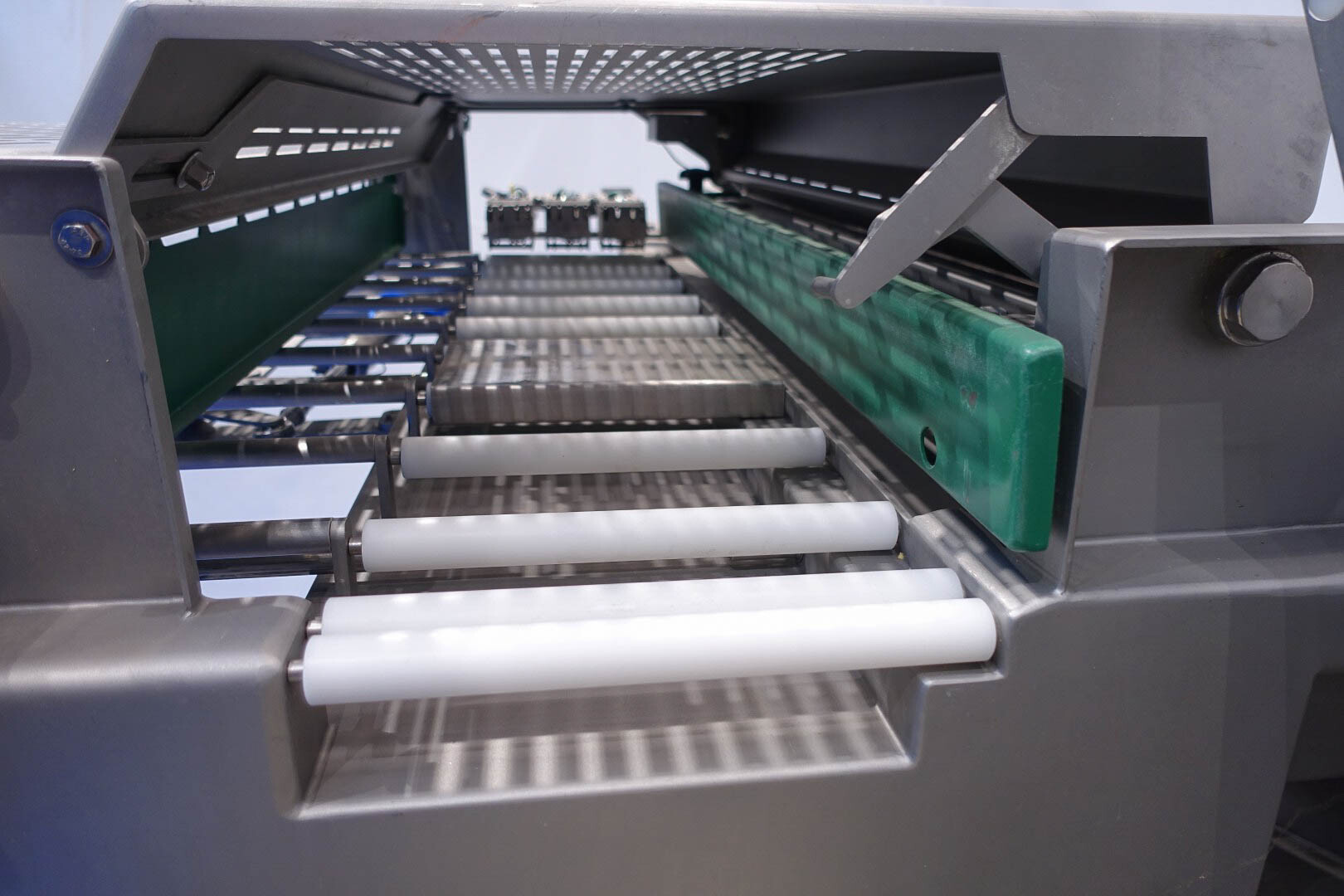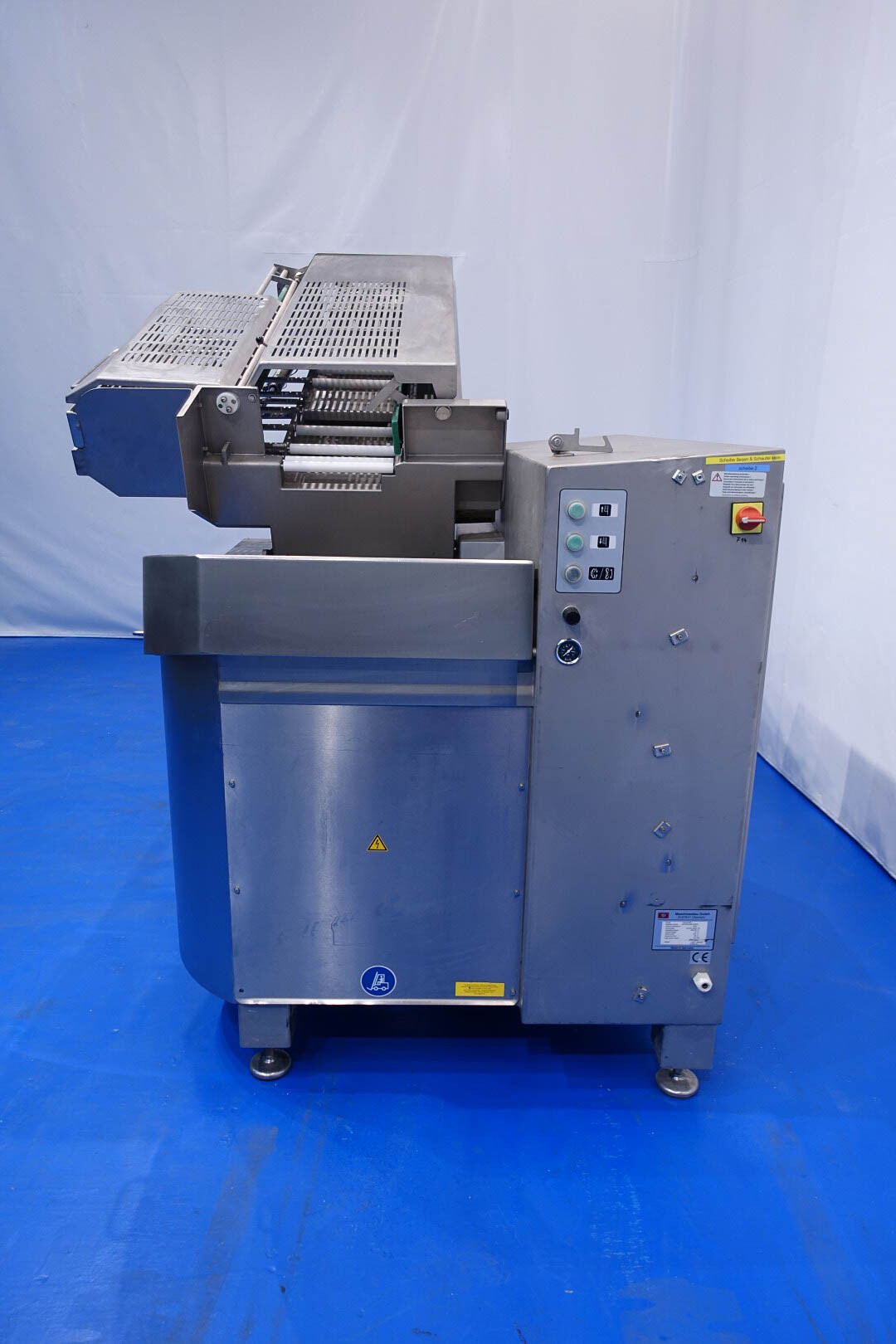 Deze snijmachine met automatische laadstandaard kan worden gebruikt voor het snijden van alle soorten vlees en harde kazen. Het compacte en ruimtebesparende ontwerp van de DIVIDER 800 zorgt voor een optimaal gebruik van de ruimte en combineert dit voordeel met de prestaties van veel grotere machines. De machine kan op veel verschillende manieren worden gebruikt vanwege de mogelijkheid om in productielijnen te draaien. Capaciteit tot 3200 sneden / min, snijdiktebereik - 0,5 - 25 mm, kamerdoorsnede - 280 x 160 mm, lengte van het gesneden product (max.) - 1200 mm, hoogte na uitvouwen - 2900, max. afsnijlengte (mm) 0,5-25, max. stapelhoogte (mm) 100, touchscreen, tot 200 op te slaan snijprogramma's, snijstatistieken, automatisch laden, draaibare laadkamer, invoerrollen voor optimale geleiding van lange producten. Sorteerlijn met trayfeeder voor het direct transporteren van producten naar de verpakkingsmachine.