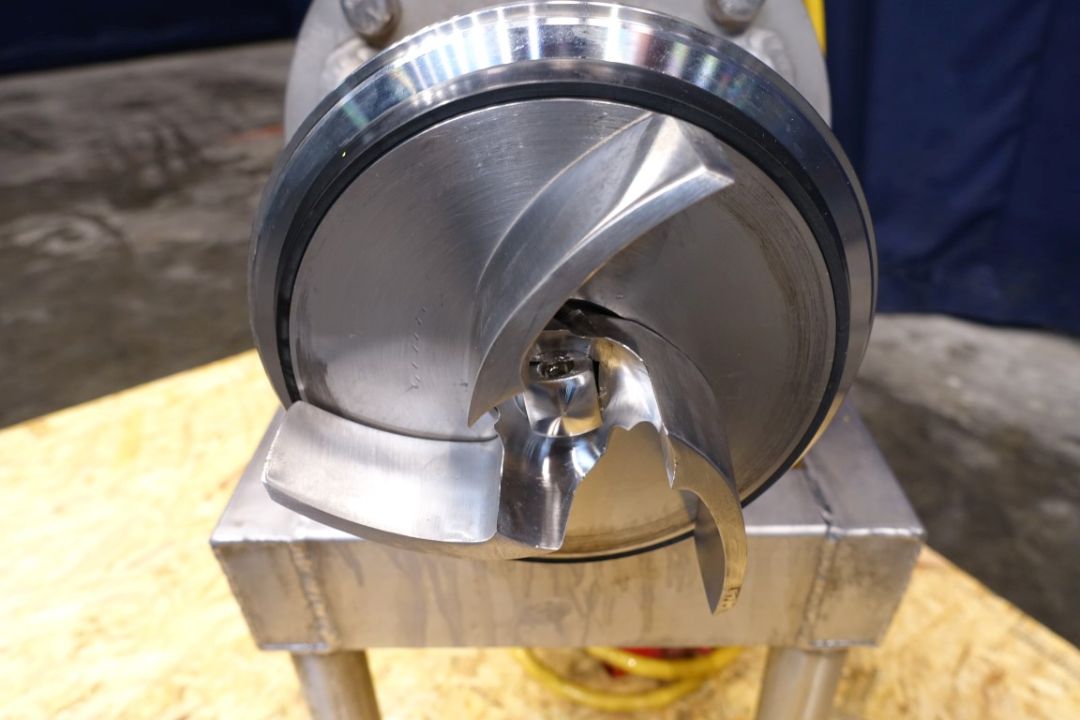 Sanitary centrifugal pump. Current motor: 4,0 kW - 7,4 A - 2925 rpm. Pressure: 4 bar. Impellor diameter: 150 mm. Connections: 2'' / 1,5'', DIN.