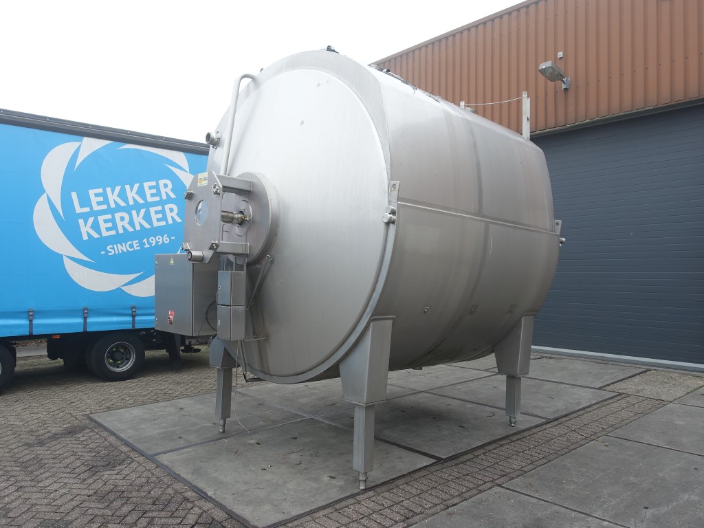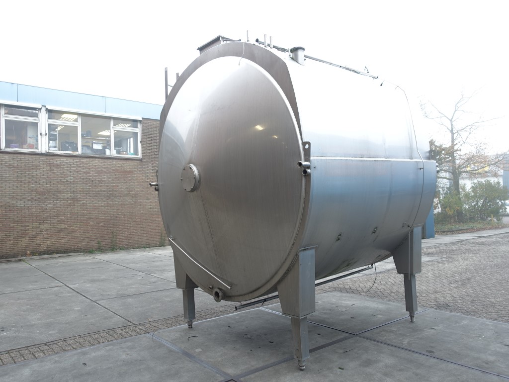 Closed curd vessel. Nominal volume: 15.000 liter, max filling 16.500 ltr. Manhole on top. Breather. Jacked for heating and cooling. Piping for whey suction device (suction sieve and drivework missing ). Main stirrer/cutter motor and knives are missing, Can be completed on request. Total dimensions: 4,4 x 3 x 3,5 mtr.
