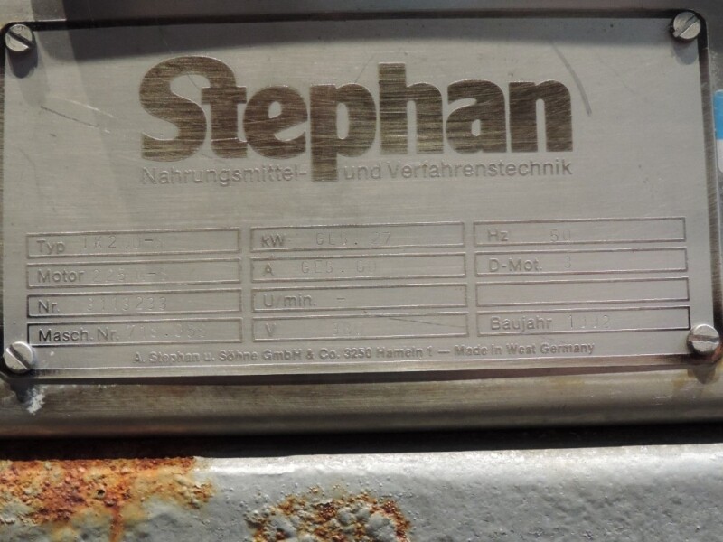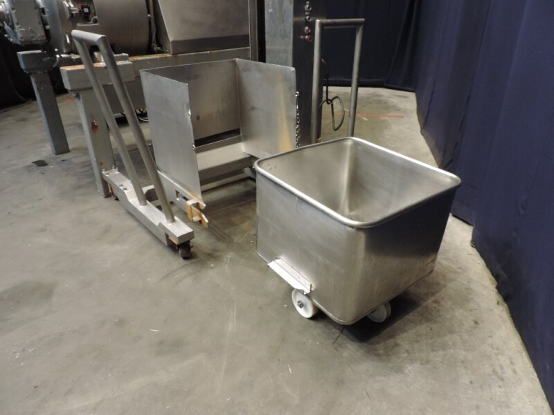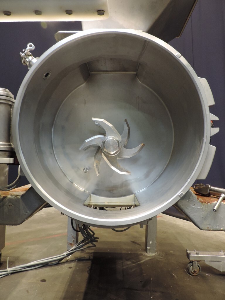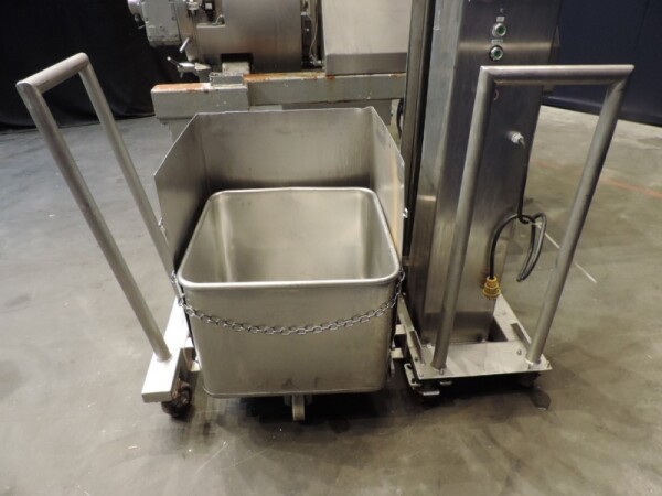 Universele horizontale menger met kook mogelijkheden. De hoofdproduct pan en deksel zijn dubbelwandig voor koeling of verwarming (geen kleppen op de mantel, geen vacuüm). Hydraulische eenheid voor het verplaatsen van de inlaatschuifklep en de uitlaatschuifklep op de bodem. De bovenste inlaatklep en het hoofddeksel aan de voorkant hebben 2 handmatige aanhaalklemmen en contactsensoren, incl. invoerbak. 2 roerwerken: 1 schraperroerwerk, 25 tpm en 1 mixer mes, 710 tpm, 22 kW, stalen frame. Inclusief lift voor trolleys 200 ltr met bedieningskasten (moet worden vernieuwd) op lift en machine. Documentatie beschikbaar