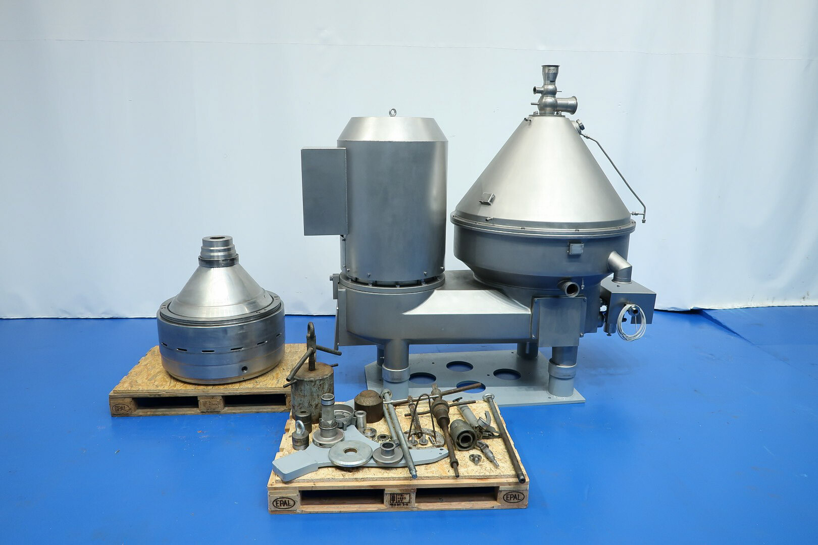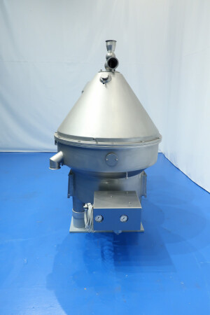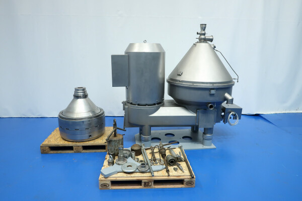 Volledig mechanisch gereviseerde melk- en wei-afroommachine, ontworpen voor het afromen van warme melk of wei met een zachte instroom. De machine is zelfreinigend en uitgerust met 20 nieuwe schijven in de trommel.