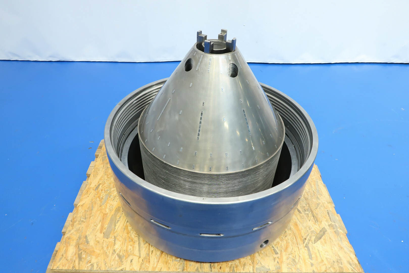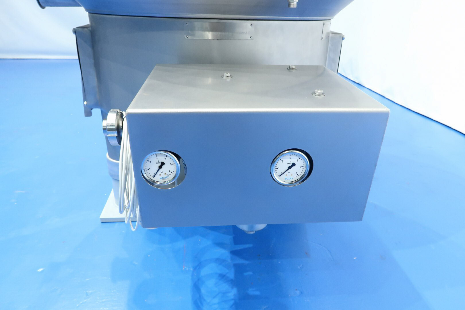 De unit omvat de trommel, motor, motorafdekking, basisframe, druksensor en pneumatisch tegendrukventiel aan de afroomzijde, evenals een flowsensor en automatische debietregelklep voor room.