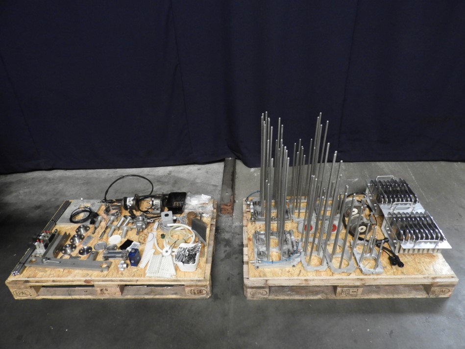Rotatry cup filler with 2 heads. Cup size round 95 mm and oval ±120 x 65 mm. Stations: cup destacking, main piston doser (100-250 ml) used for used for processed cheese (hot fill) with double jacketed hopper and agitator in hopper (CIP cleanable), alu foil dispending by vacuum (pre formed), tip sealing, heat sealing, snap-on lid, after pusher and outfeed conveyor of ± 2 meter. Machine has stainless steel frame around the machine (excluding plexiglas safety guards. Easy format change. Controls: Omron PLC and Exor touch screen HMI. Electric scheme available. Total dimensions of machine: 300 x 200 x 235cm.