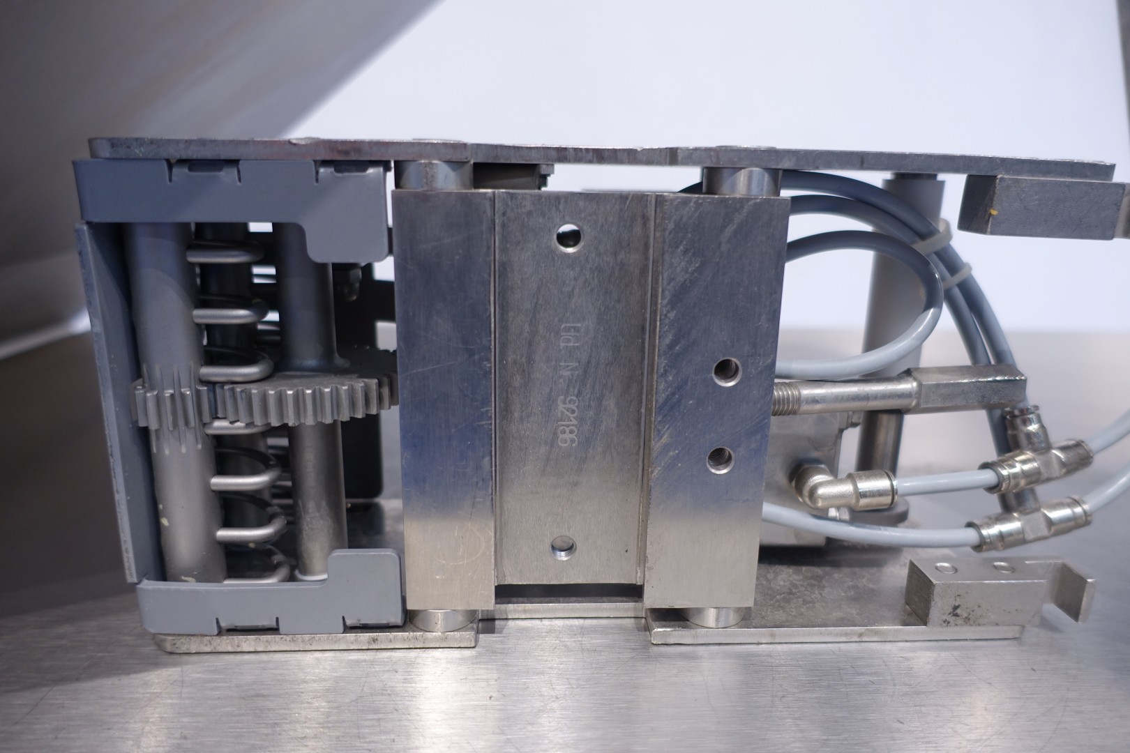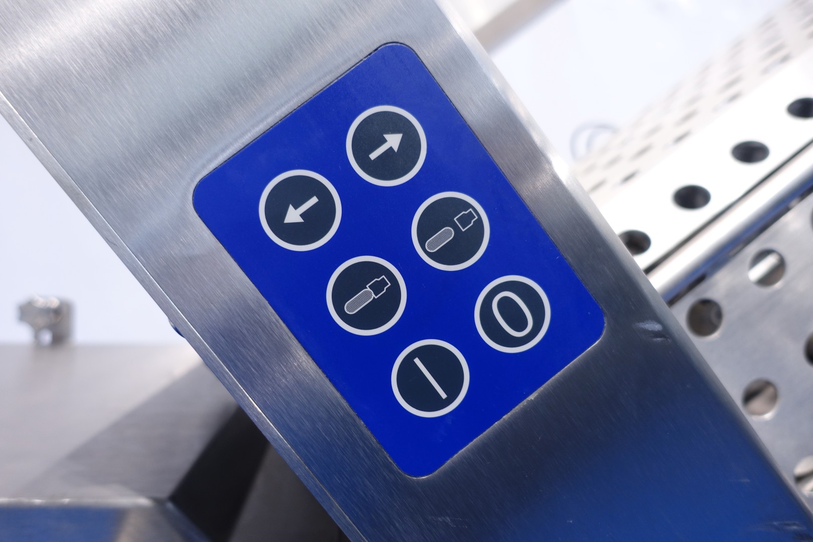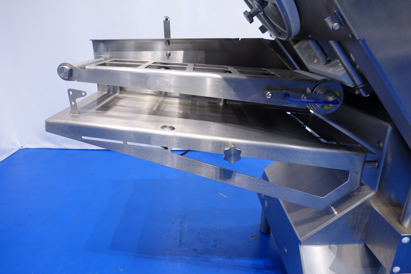 Cheese slicer with circular blade and a manual loading. Easy to operate and to change applications. Both slicing edge and slicing stop can be adjusted to the product width. To produce stacked portions, This Slicer 305 -117- UB is equipped with a stack lowering device, which guarantees the gentle placement of each individual slice and precisely portioned stacks. Total dimensions: 230x80x205 (lxwxh) cm - weight: 916 kg. Currently without backplate and knive cover.