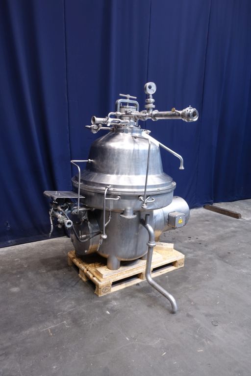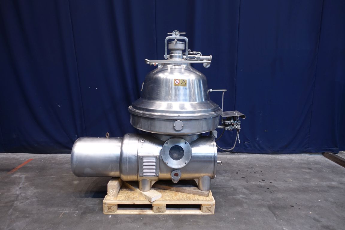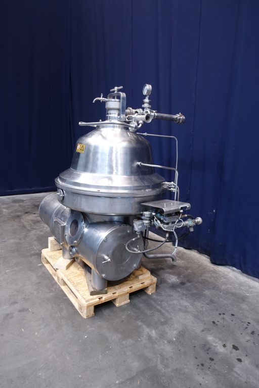 Bactofuge for bacteria spores removal (working temperature: 55/57°C). Bactofuge complete with bowl. Bowl speed: 4.700 rpm. Motor cover, base frame and inlet filter. Set of needed tools with ring key for maintenance. Instruction manual and spare parts list available. Excluding control panel.