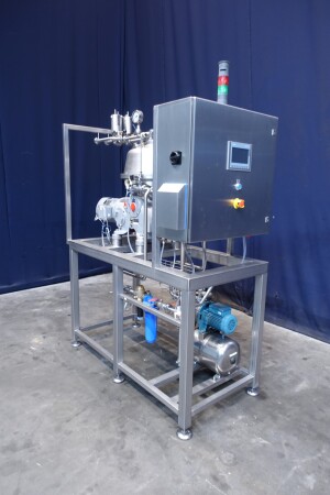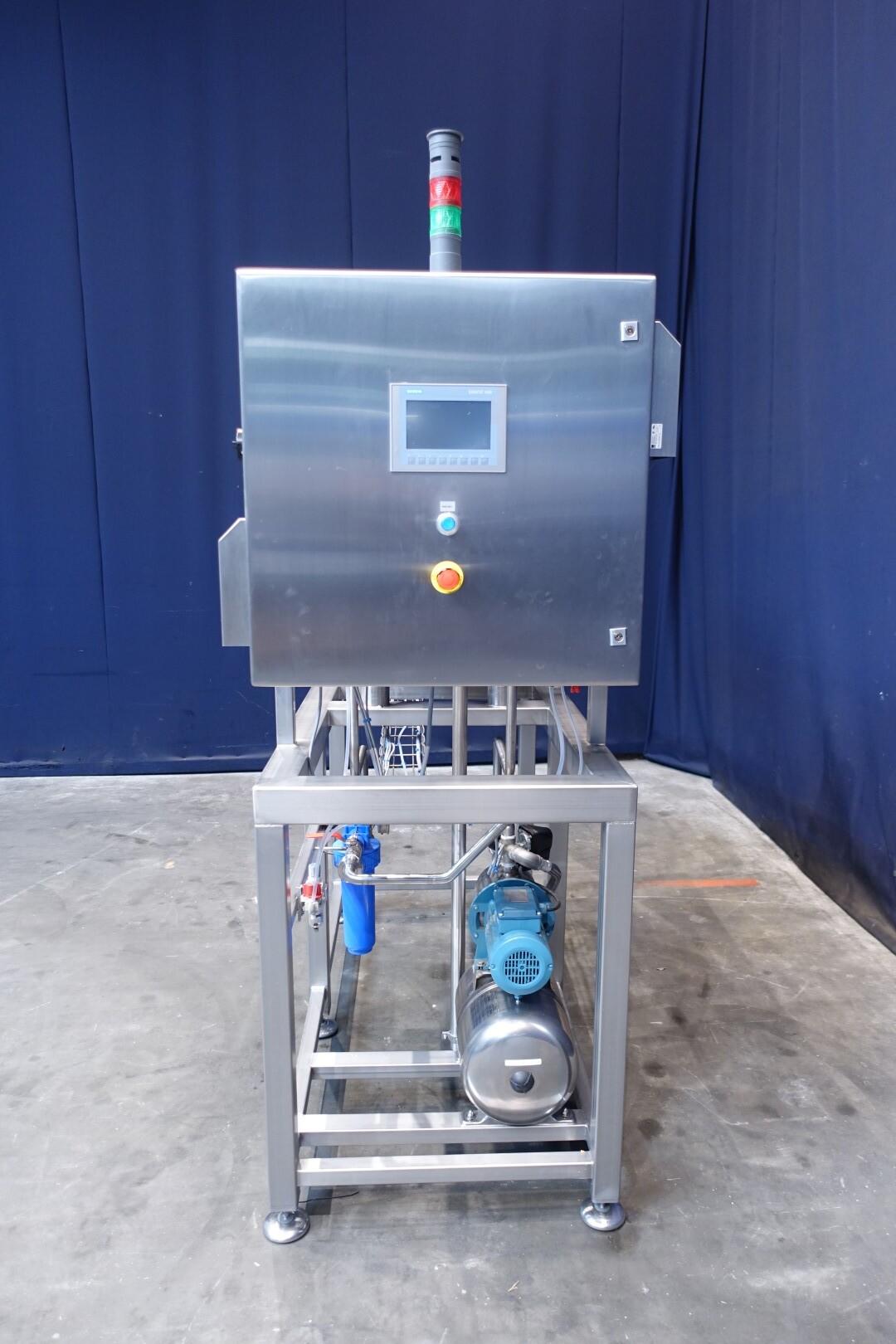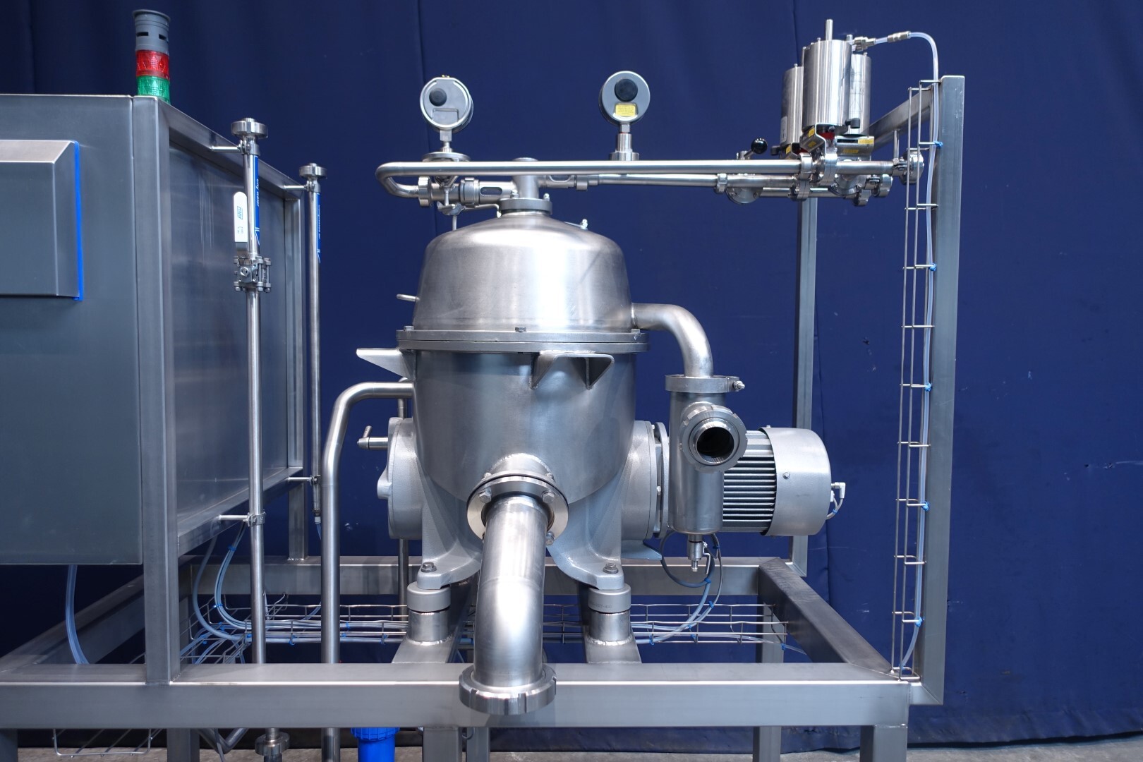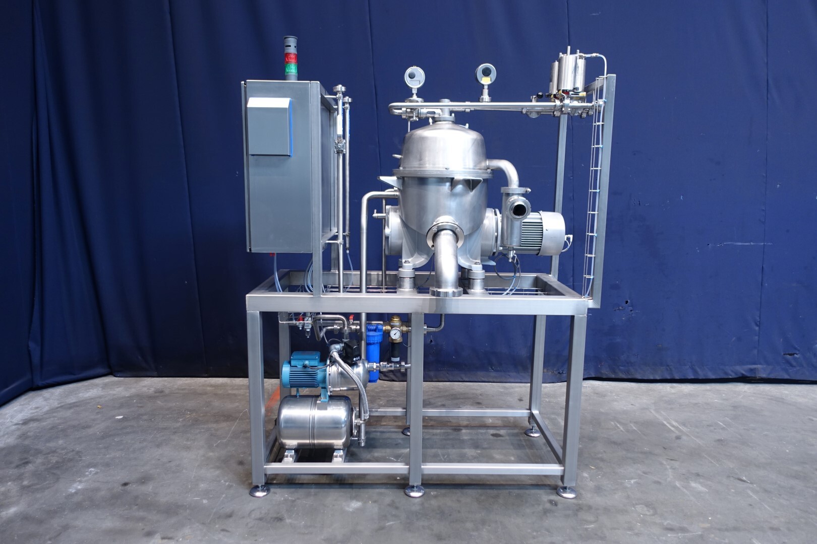 Восстановленная вода — жироотделитель с одним центростремительным насосом для тяжелой фазы (например, вода/обезжиренное молоко) с самоочищающейся чашей. Сепаратор используется для разделения жидких смесей, в которых доля легкой фазы (например, жир/остаточное масло) мала (менее 10%) или варьируется в широких пределах. Тяжелая фаза откачивается под давлением, легкая фаза покидает машину самотеком через нижнее выпускное отверстие. Скорость чаши 9.210 об/мин. Детали двигателя: 4 кВт. Ø Di, мм 271. Скорость чаши: 9.210 об/мин. Тяжелые жидкости: 1,0. Твердый: 1,15. перепускные клапаны продукта. Резервуар для сбора осадка. Полностью восстановлен, установлен на раме из нержавеющей стали. Новый блок управления с ПЛК Siemens S7-1200 и сенсорной панелью управления со всеми сообщениями и настройками. Двигатель-индикатор ампер, счетчик часов, преобразователь частоты, кабели, показания датчиков давления. Водяные клапаны для управления водой для открытия и закрытия чаши с редукторами воды и модулем постоянного давления воды. Фильтры для воды и запасные фильтры.