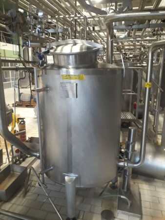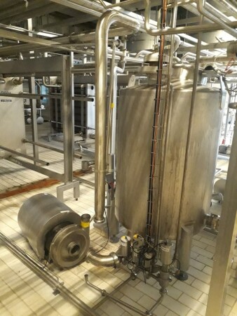 Термизатор / пастеризатордляцельногомолока, полностьюавтоматический. Вналичии: Центробежныйнасосподачивпастеризатор. Входнойфильтриуравнительныйбакс 3 датчикамиуровняираспылителемдля CIP. Парорегулирующийклапан (Самсон). Теплообменникпара / горячейводы. Конденсатоотводчикициркуляционныйнасос (горячаяводаустановленанаотдельнойраме). Пластинчатыйтеплообменник, 4 секции, 2хрегенерация (блокдляподключениягомогенизатораилисепаратора). Отоплениеиохлаждениеледянойводой, температурнаясхема: 4-55-65-4 ° С. Изолированнаяудерживающаятрубка, установленнаявверхнейчаститеплообменника. Времявыдержкиприблизительно: 300 секпри 25 T. Выдержкаразмера: 5 x 6 x 6 м = 180 метроваятруба, 4 дюйма = приблизительно 1400 л = 200 секпри 25 т / ч. Включаяклапанотводапотокаивседатчики, клапаныледянойводы ( Самсон). Регулируемаяскорость 25 000–37 000 литроввчаспритемпературеот 25 до 95 ° C притемпературеот 37 до 65 ° C.Никакого контроля. Доступны PID, руководство по запасным частям и план. Машинка в продаже с июня.